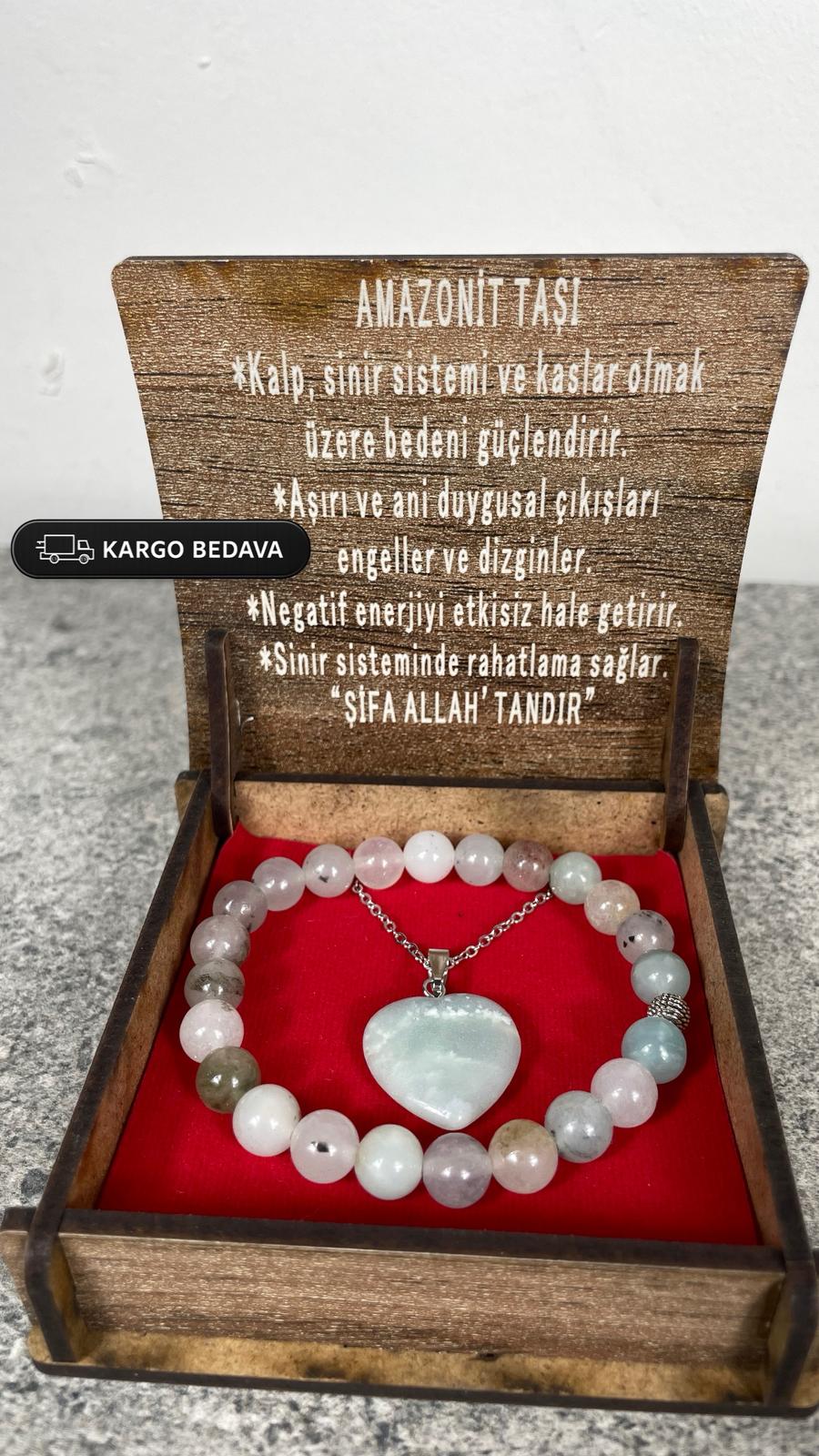 Amazonit Taşı Kolye & Bileklik Seti – Özel Ahşap Kutulu