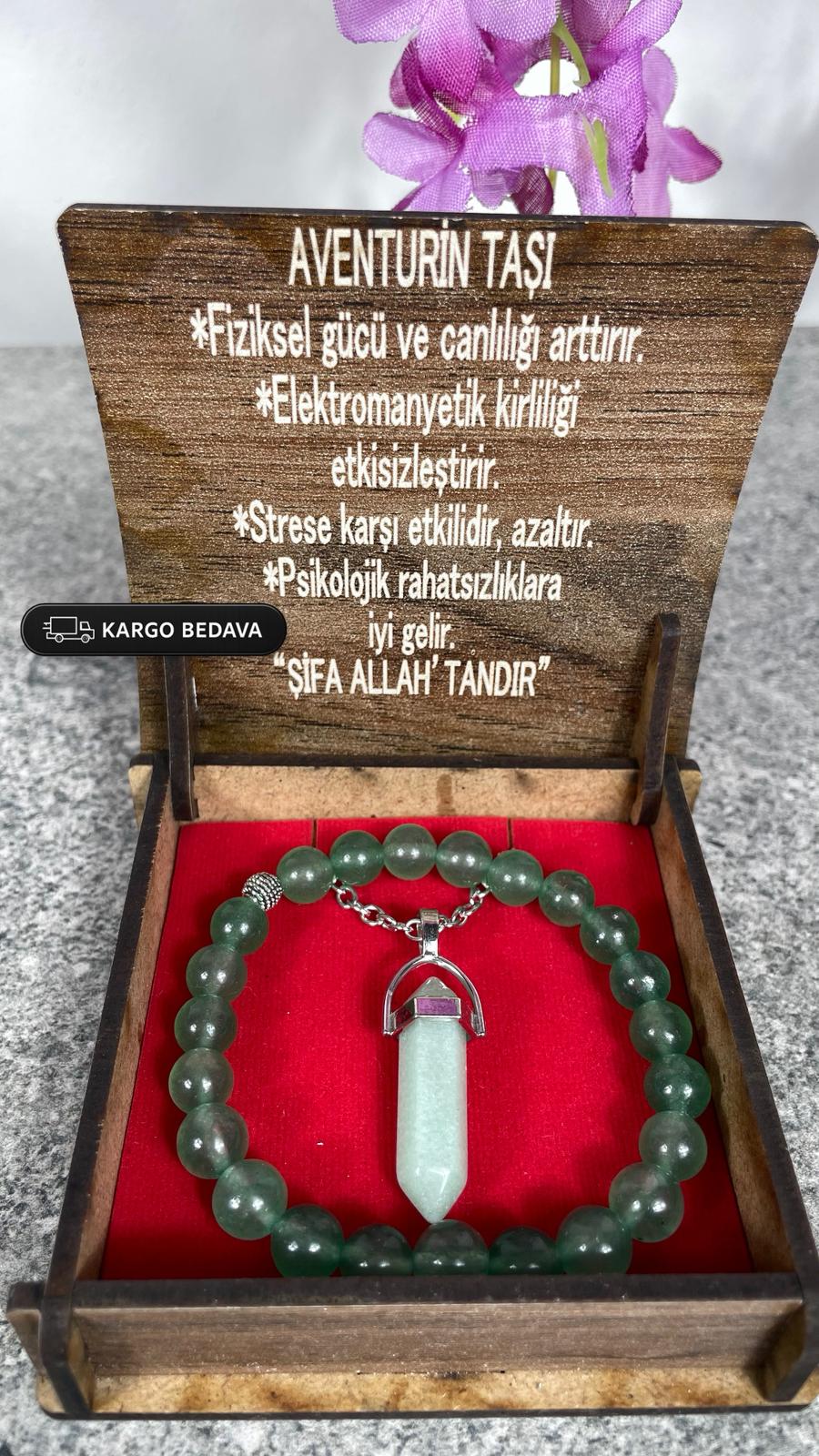 Aventurin Doğal Taş Kolye & Bileklik Seti – Özel Ahşap Kutulu
