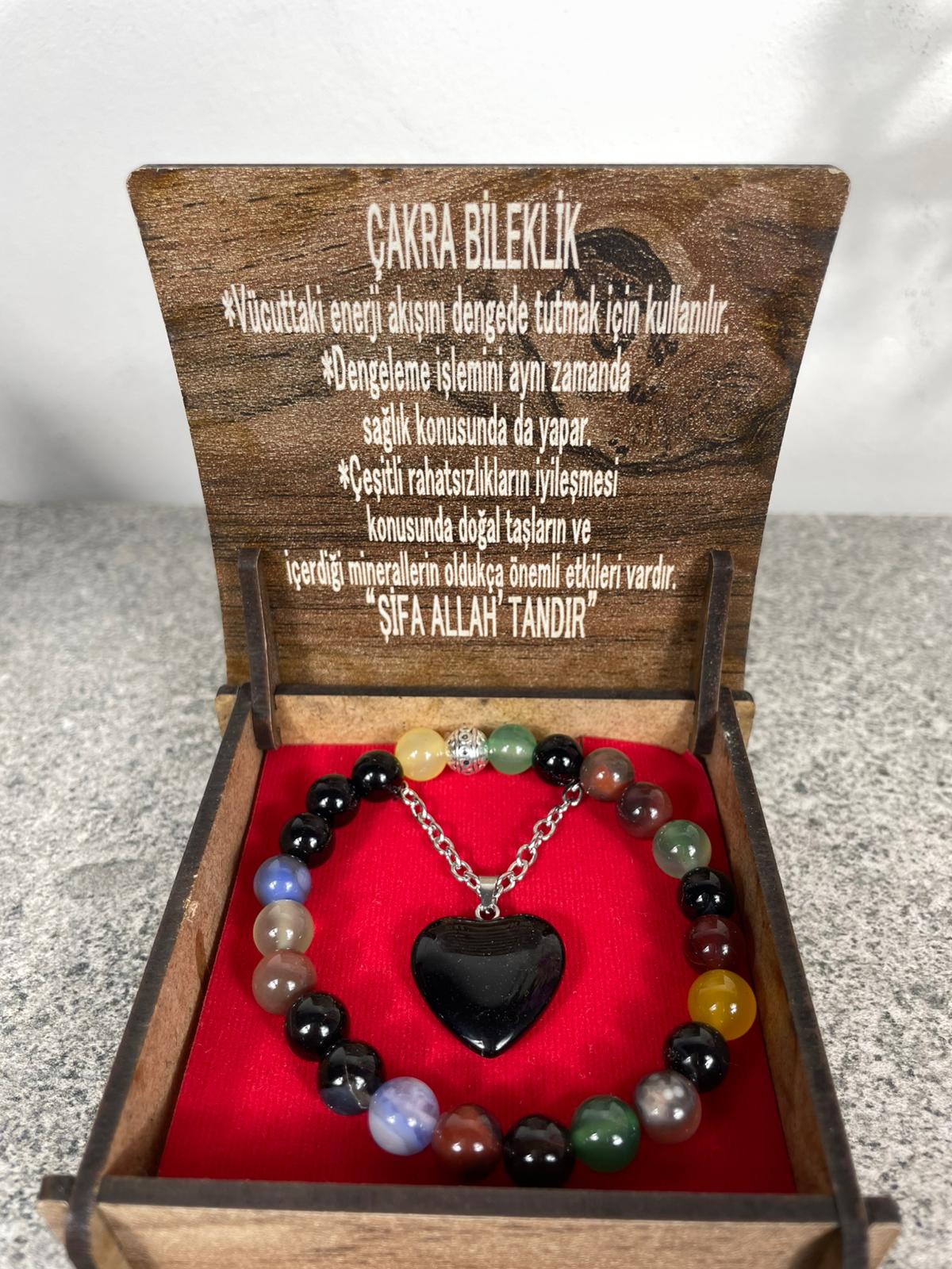 Çakra Taşı Doğal Taş Kolye & Bileklik Seti – Özel Ahşap Kutulu