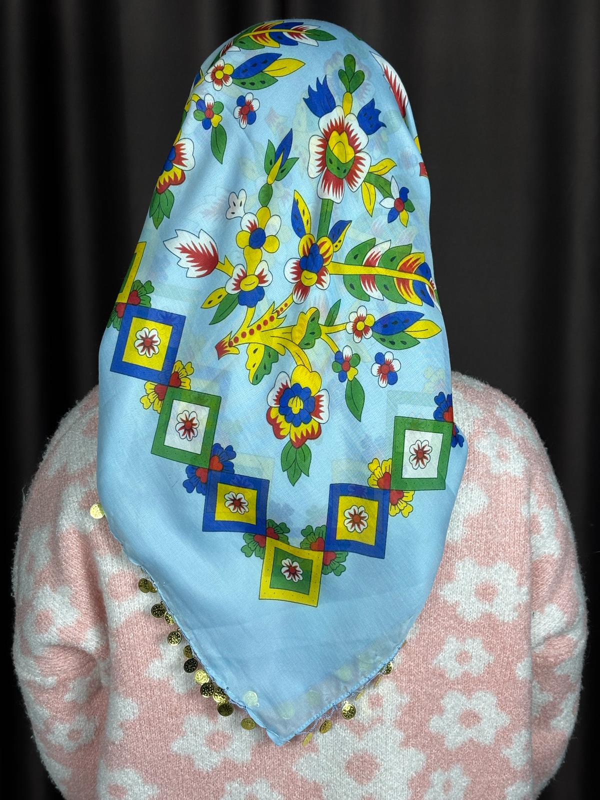 Çengelköy Desen Pullu Yöresel Yazma - Mavi