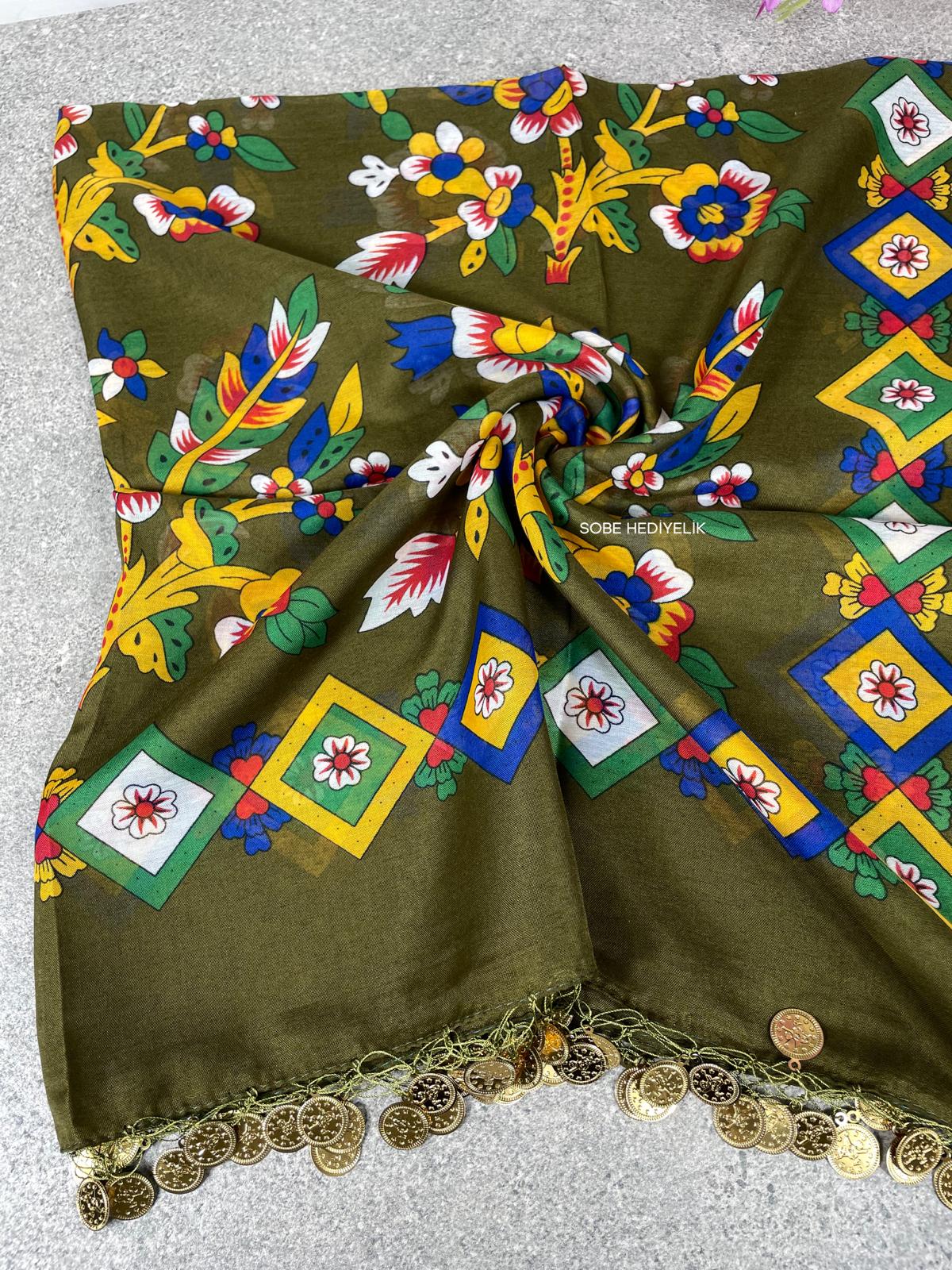Çengelköy Desen Pullu Yöresel Yazma - Yeşil