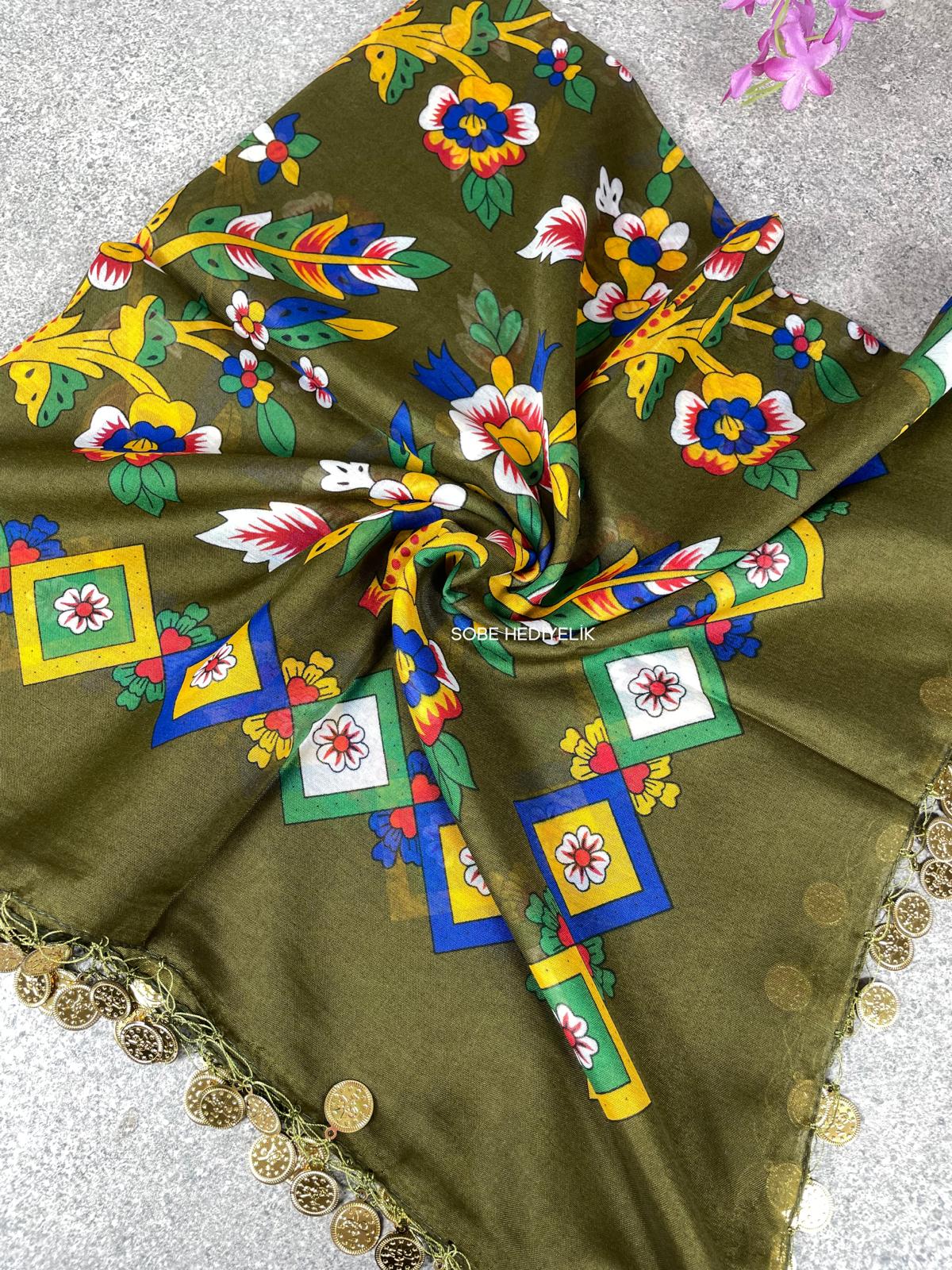 • Geleneksel kare motif ve çiçek tasarımlarıyla yöresel stilin modern yorumu.
