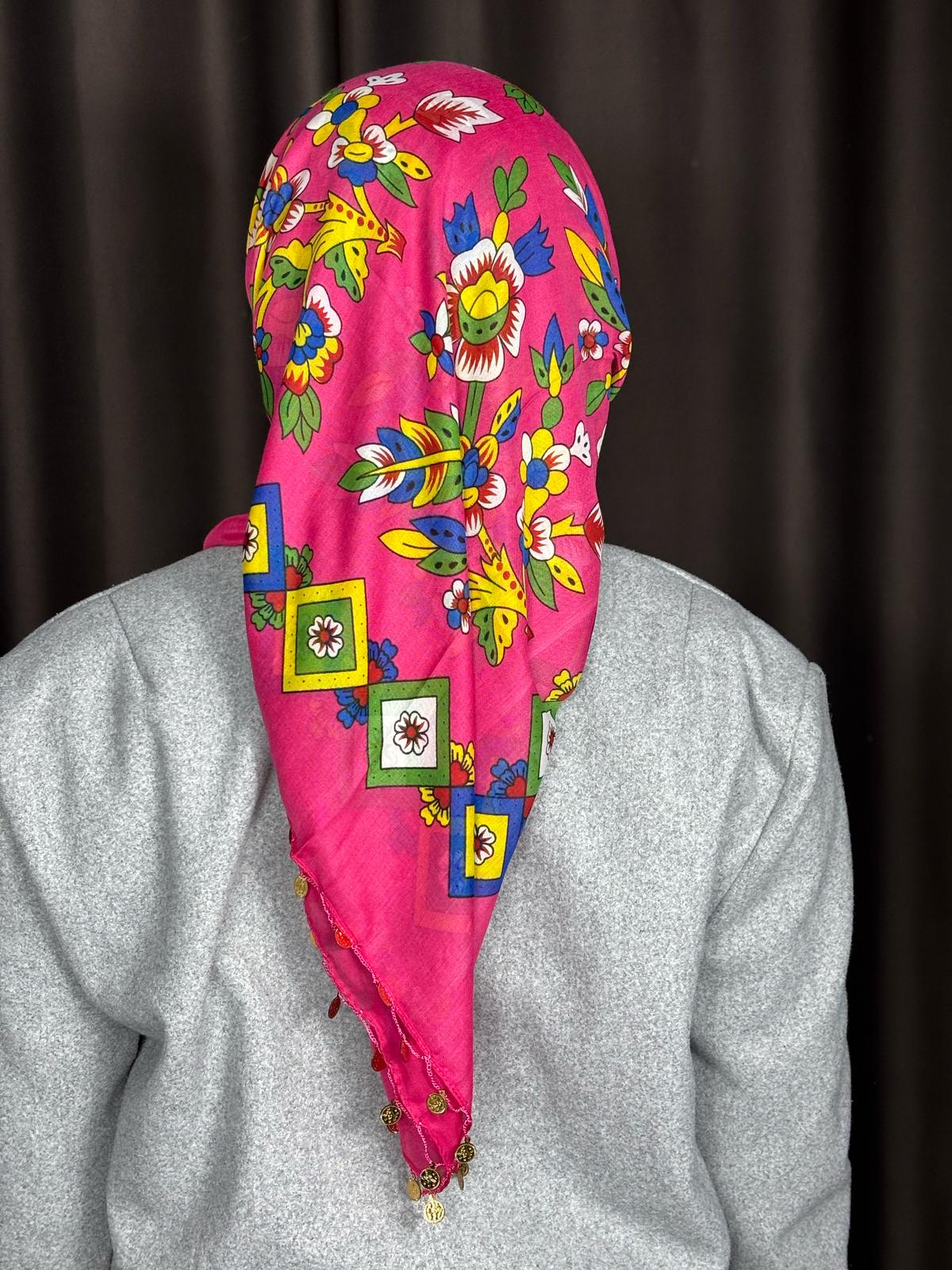 Geleneksel kare motif ve çiçek tasarımlarıyla yöresel stilin modern yorumu.