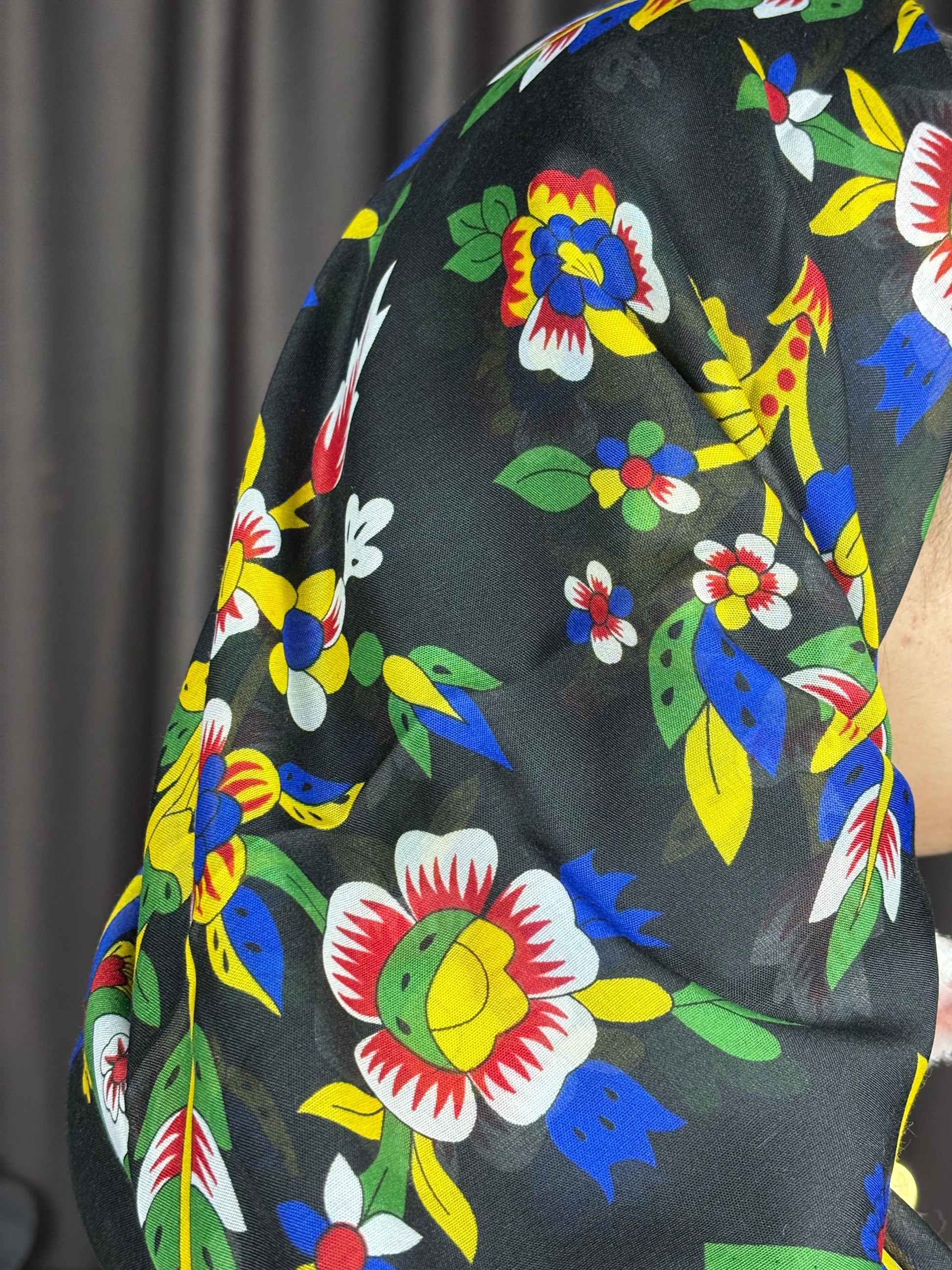 Siyah zemin üzerine kurulu Çengelköy deseni, canlı renkleriyle dikkat çeker.