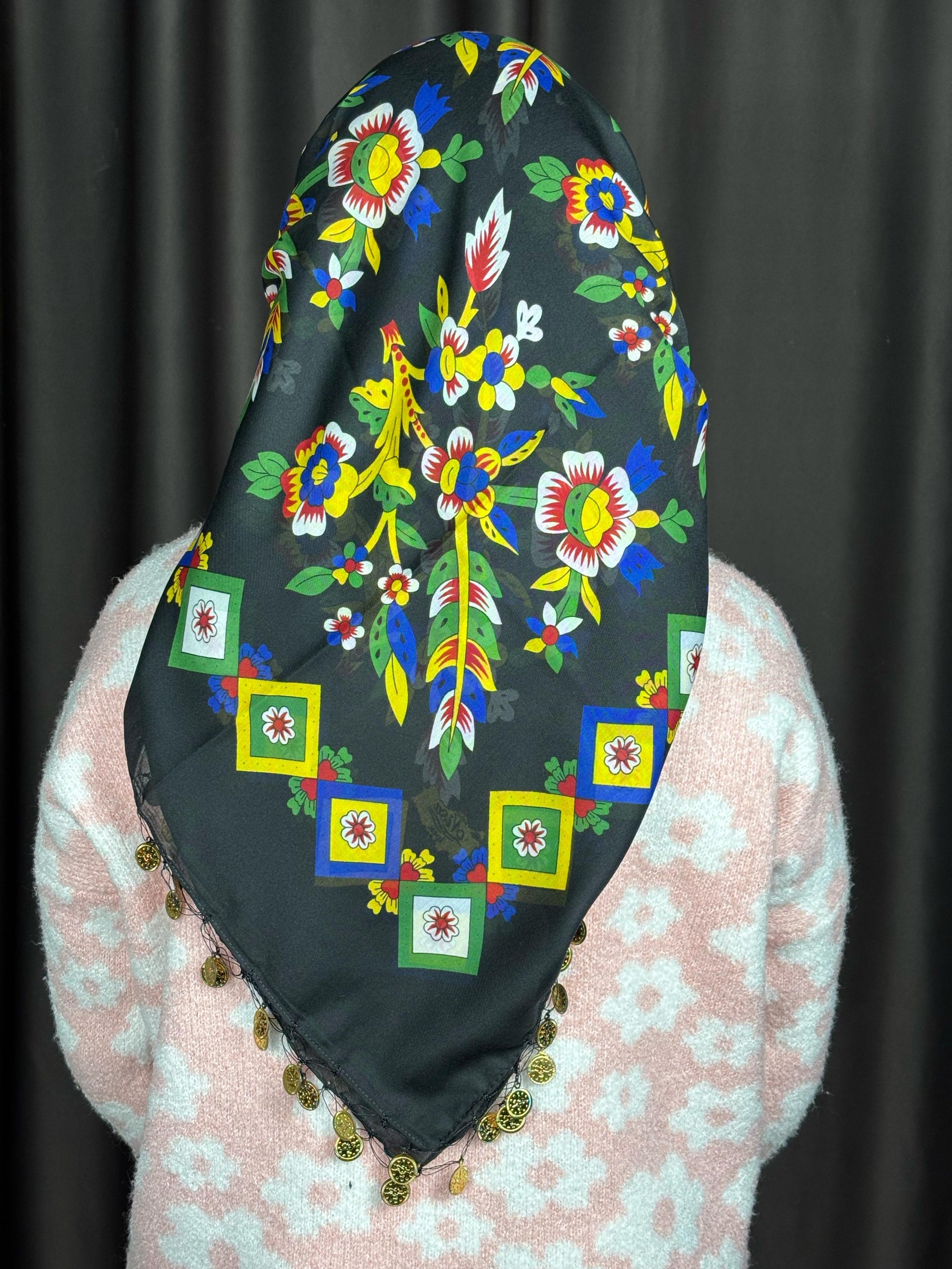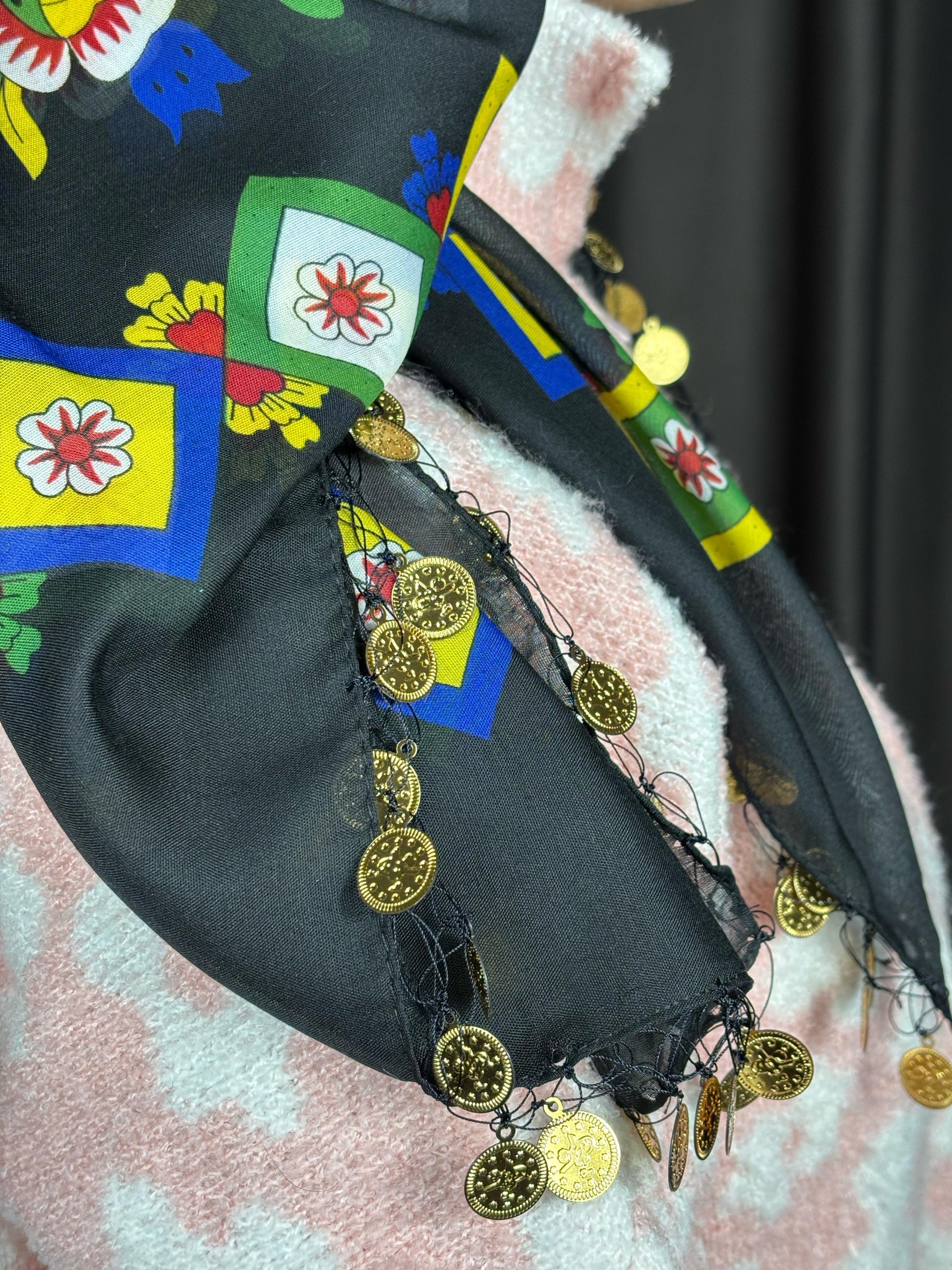 Geleneksel kare motif ve çiçek tasarımlarıyla yöresel stilin modern yorumu.