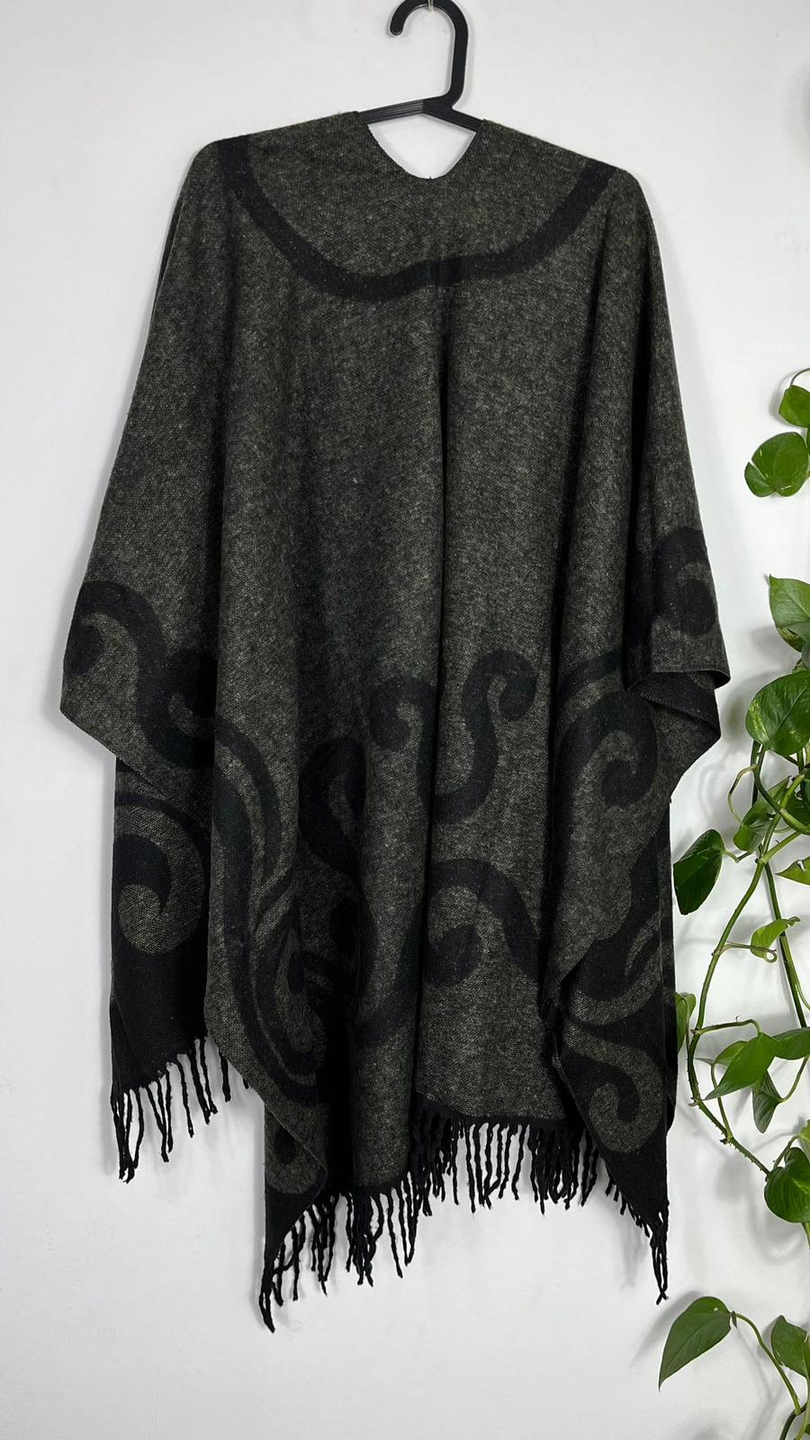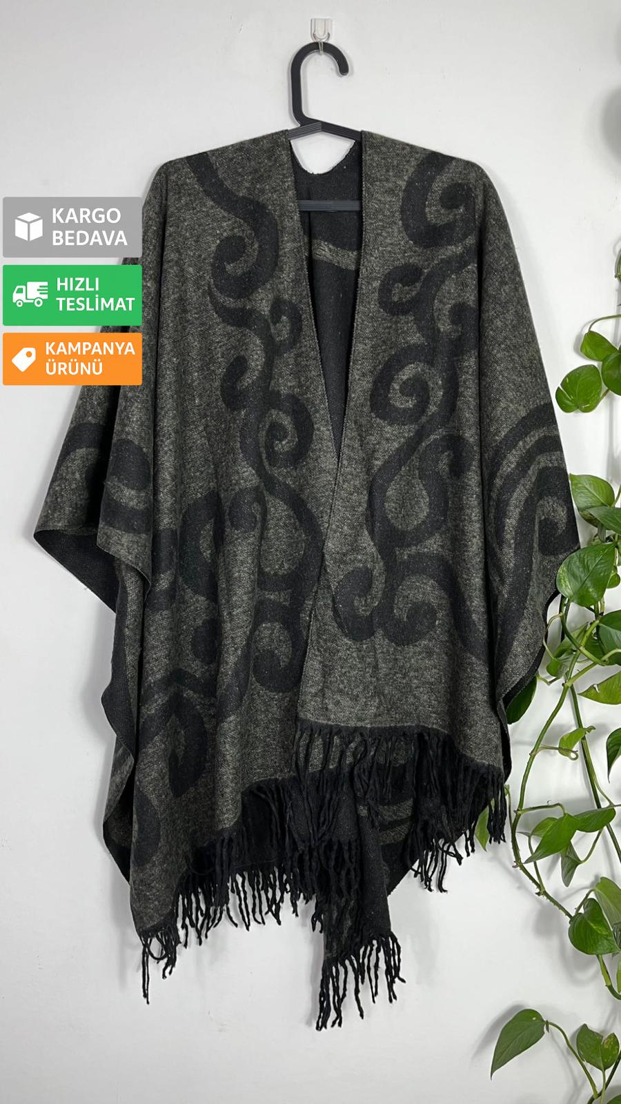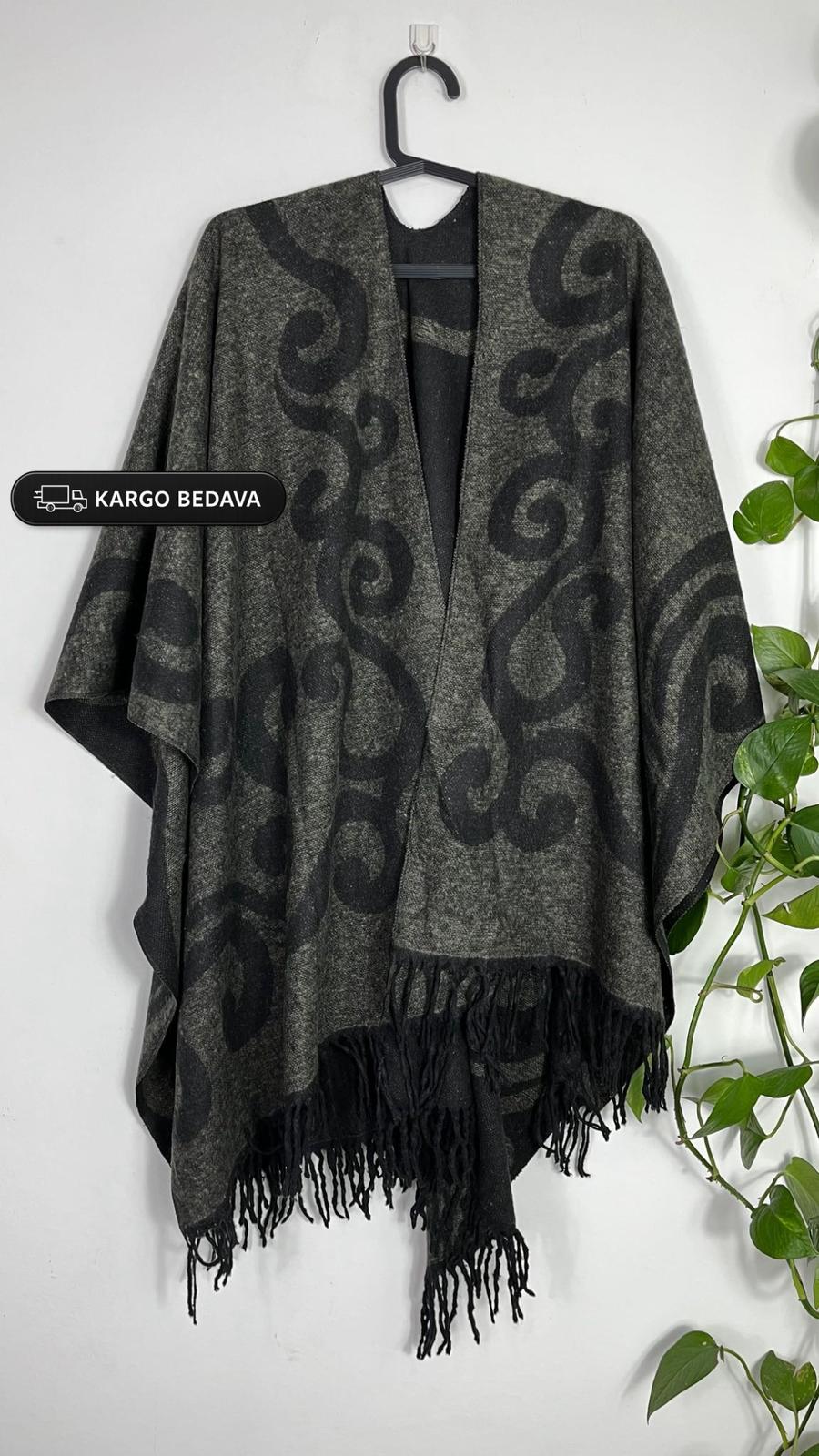 Çift Taraflı Yünlü Desenli Kadın Panço