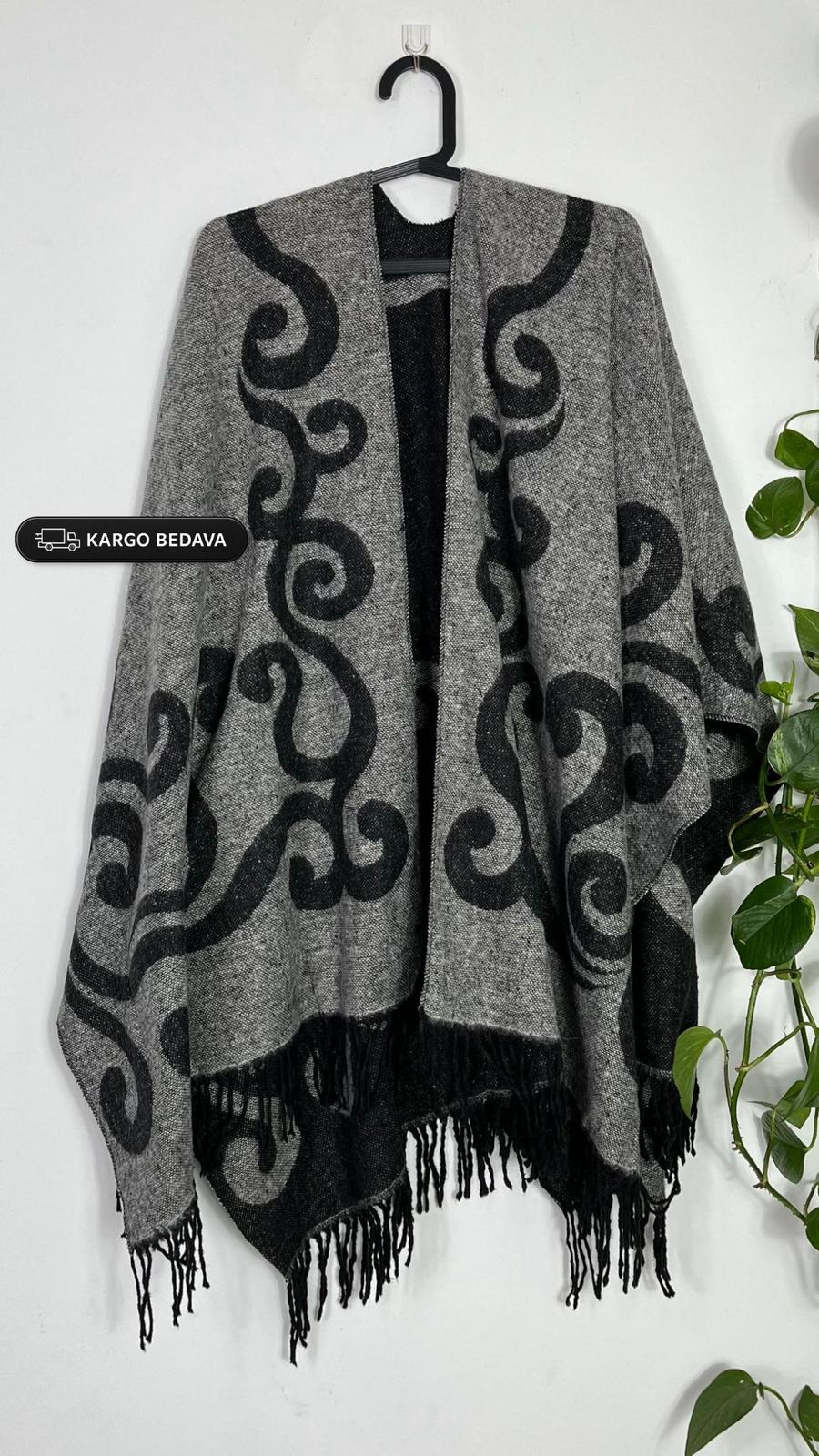Çift Taraflı Yünlü Kadın Panço
