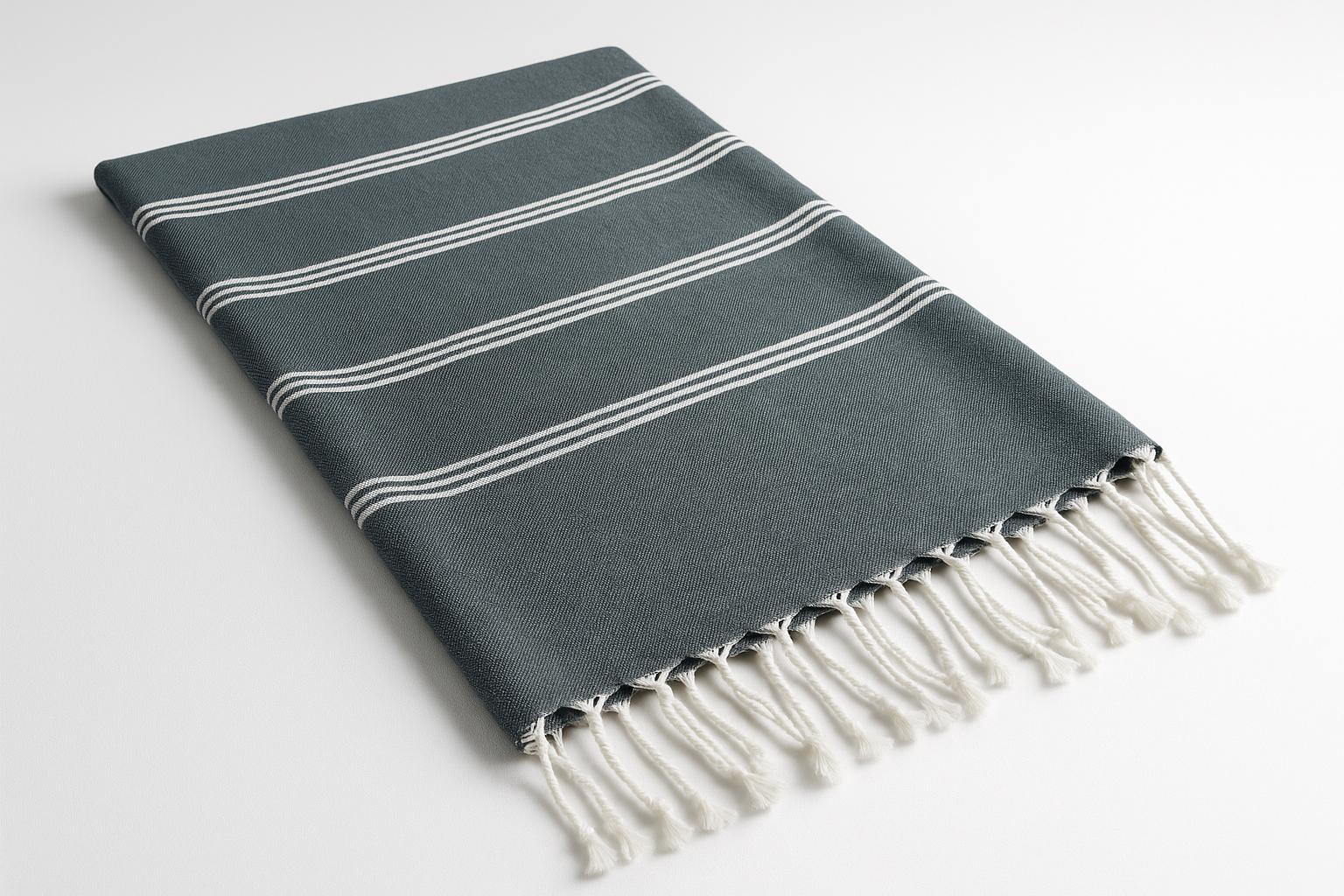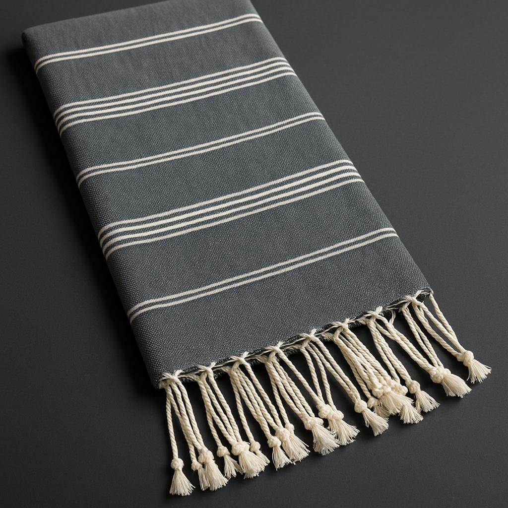Zarif püskül detayları ve modern çizgili deseniyle hem şık hem fonksiyonel bir peştemaldir.