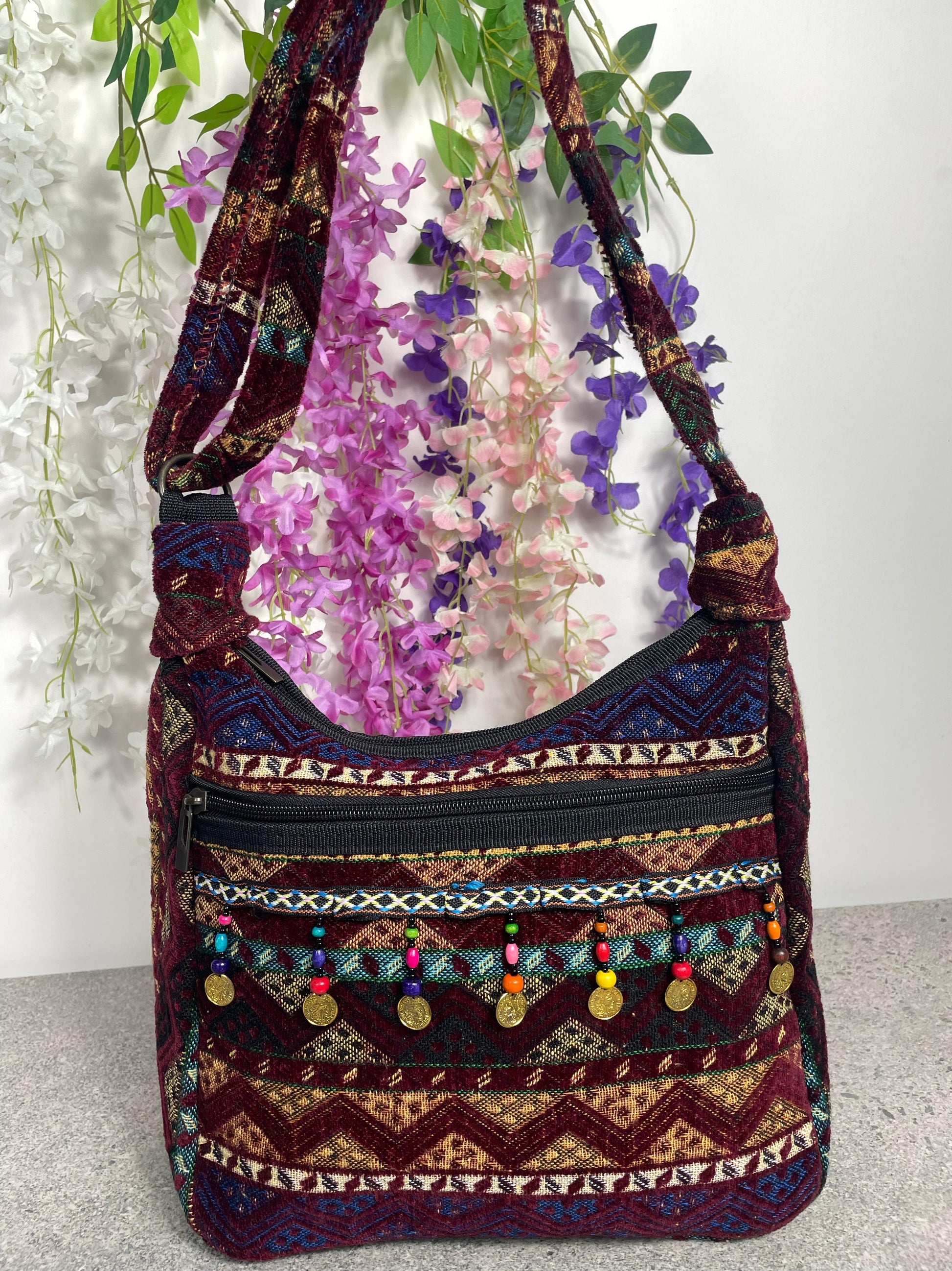 Etnik Desenli Otantik Yan Çanta - Ayarlanabilir Askı