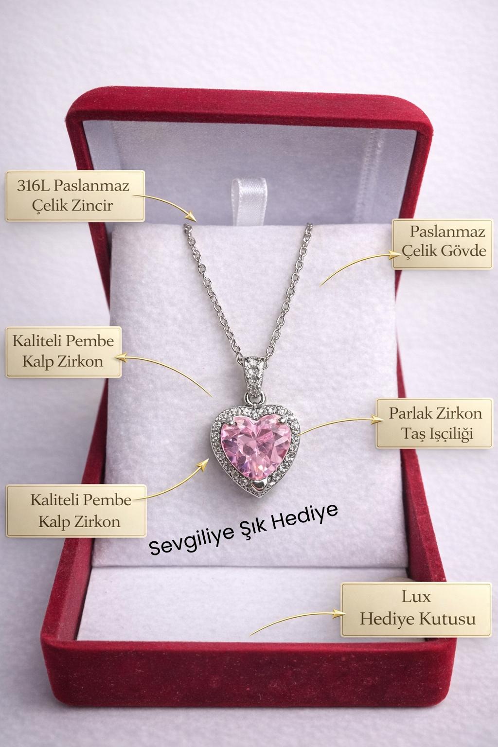 - Pembe kalp kesim zirkon taş – parlak ve net taş görünümü