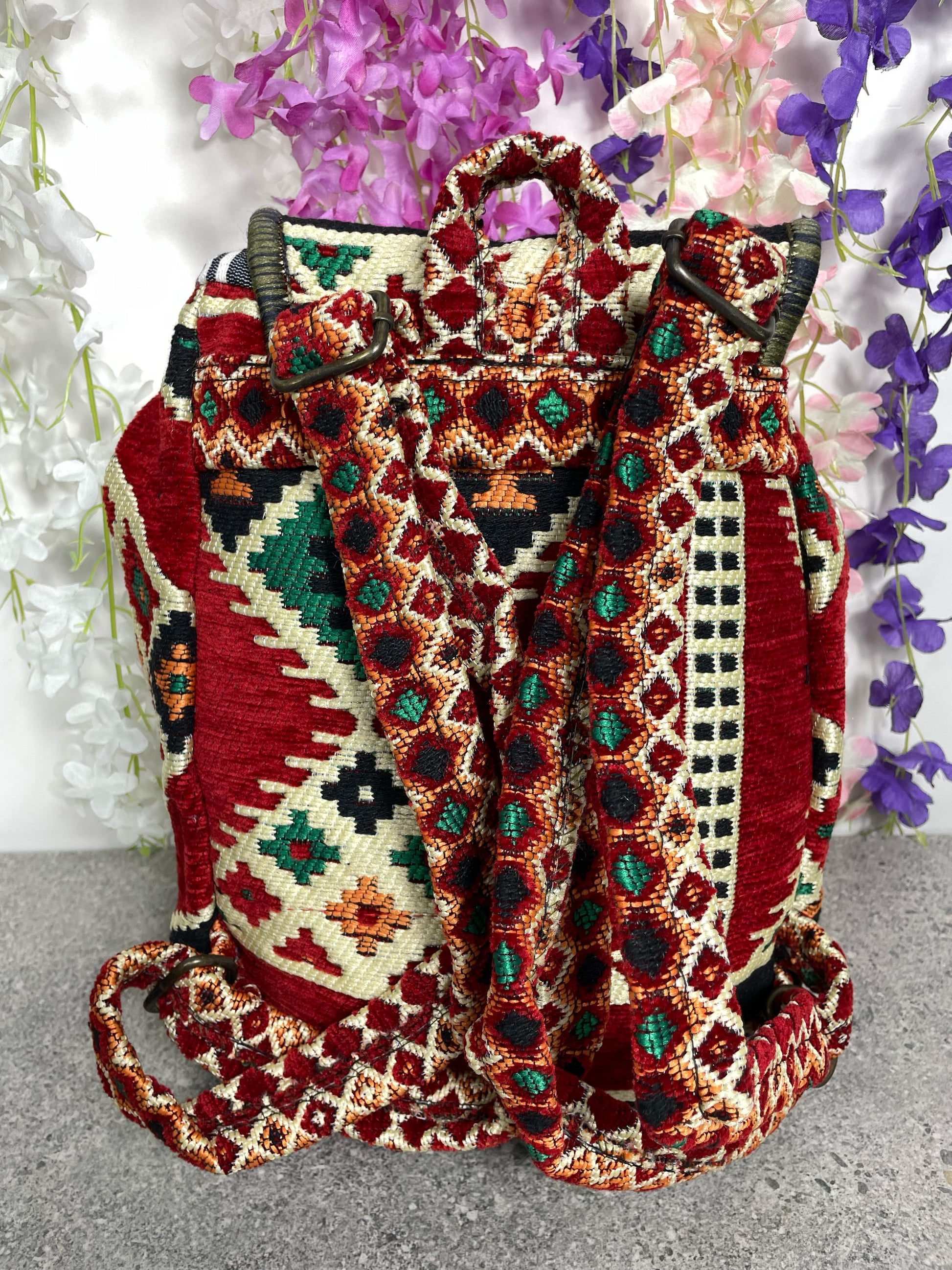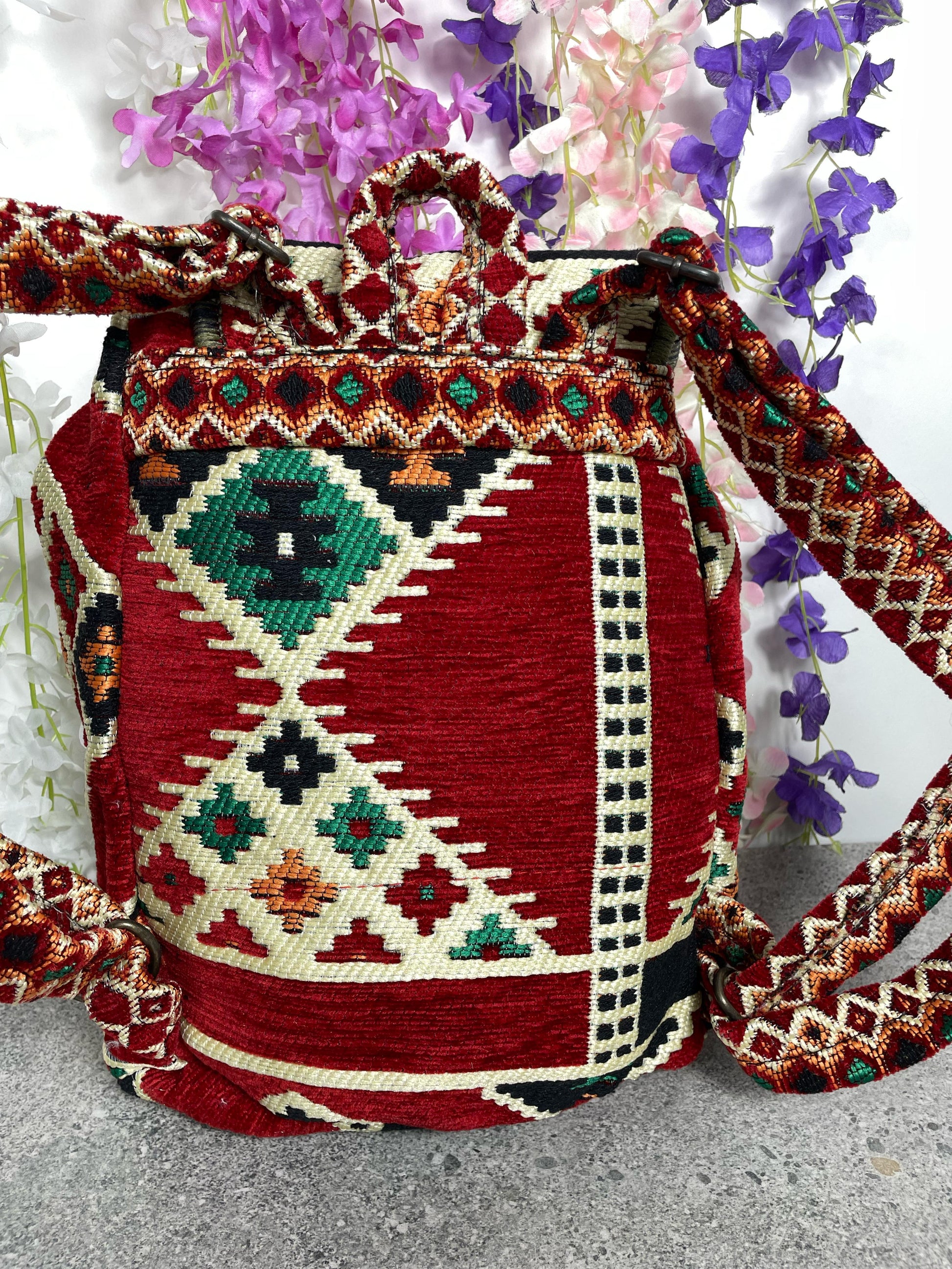 Kalın özel dokuma kumaş ile üretilmiş dayanıklı ve yüksek kaliteli bir bohem sırt çantasıdır.