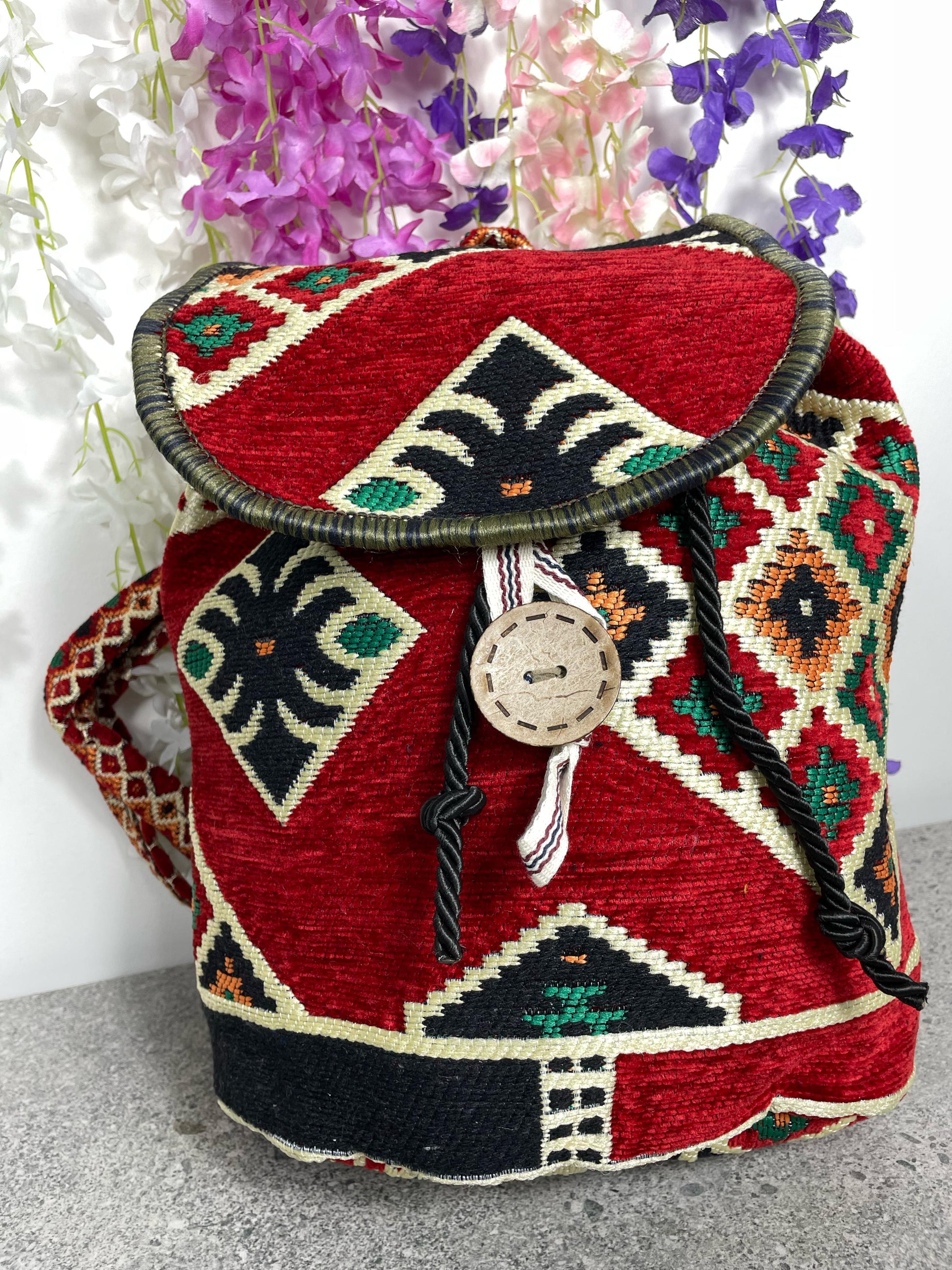 Kırmızı Etnik Dokuma Otantik Sırt Çantası