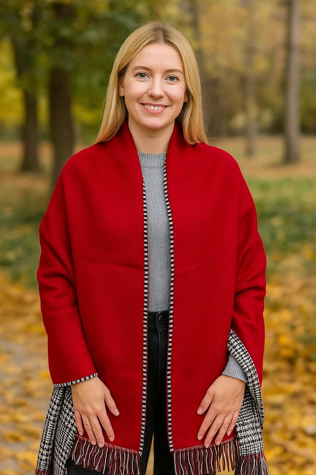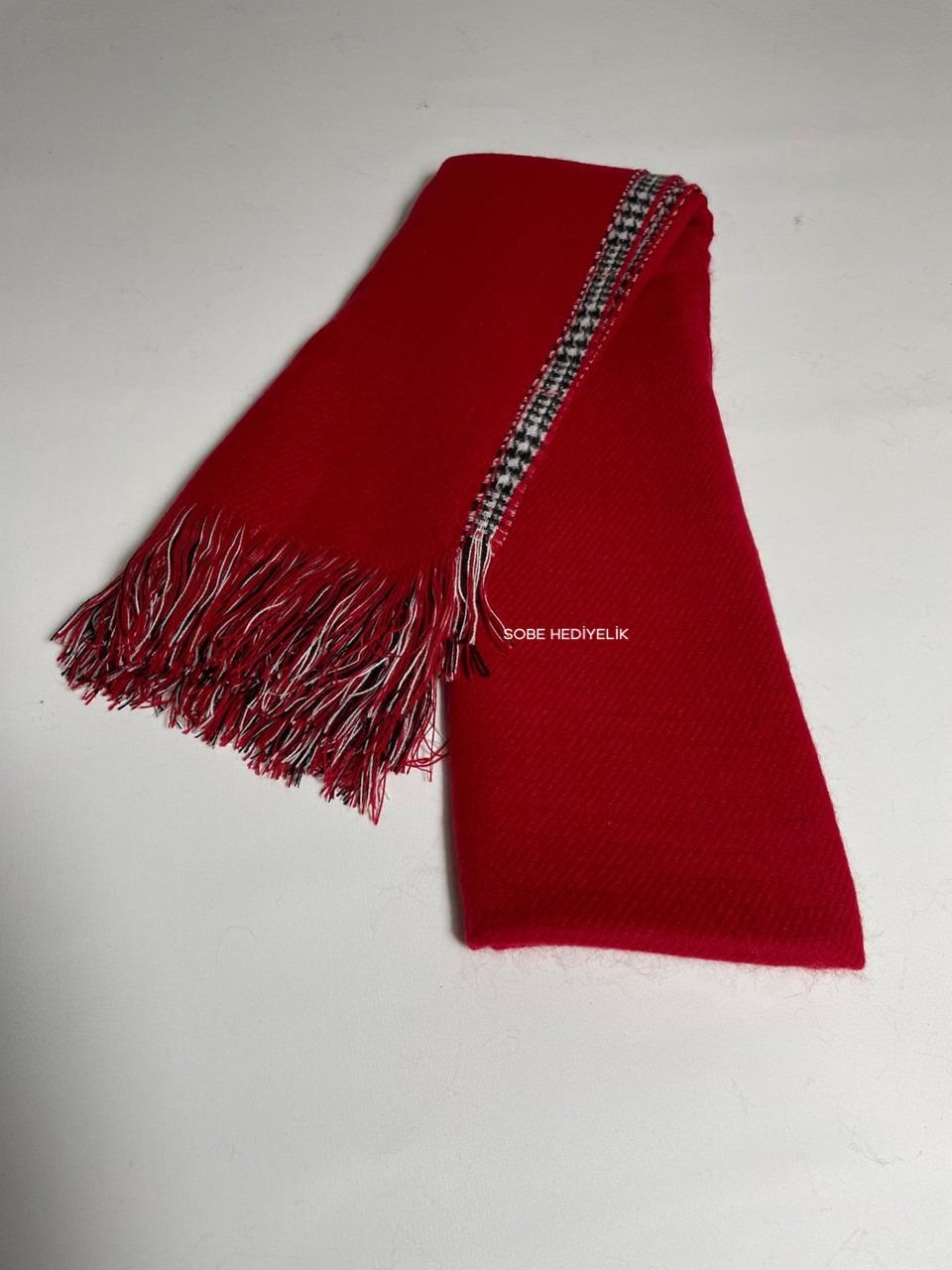 Kışlık Yünlü Çift Taraflı Ekose Şal - Kırmızı