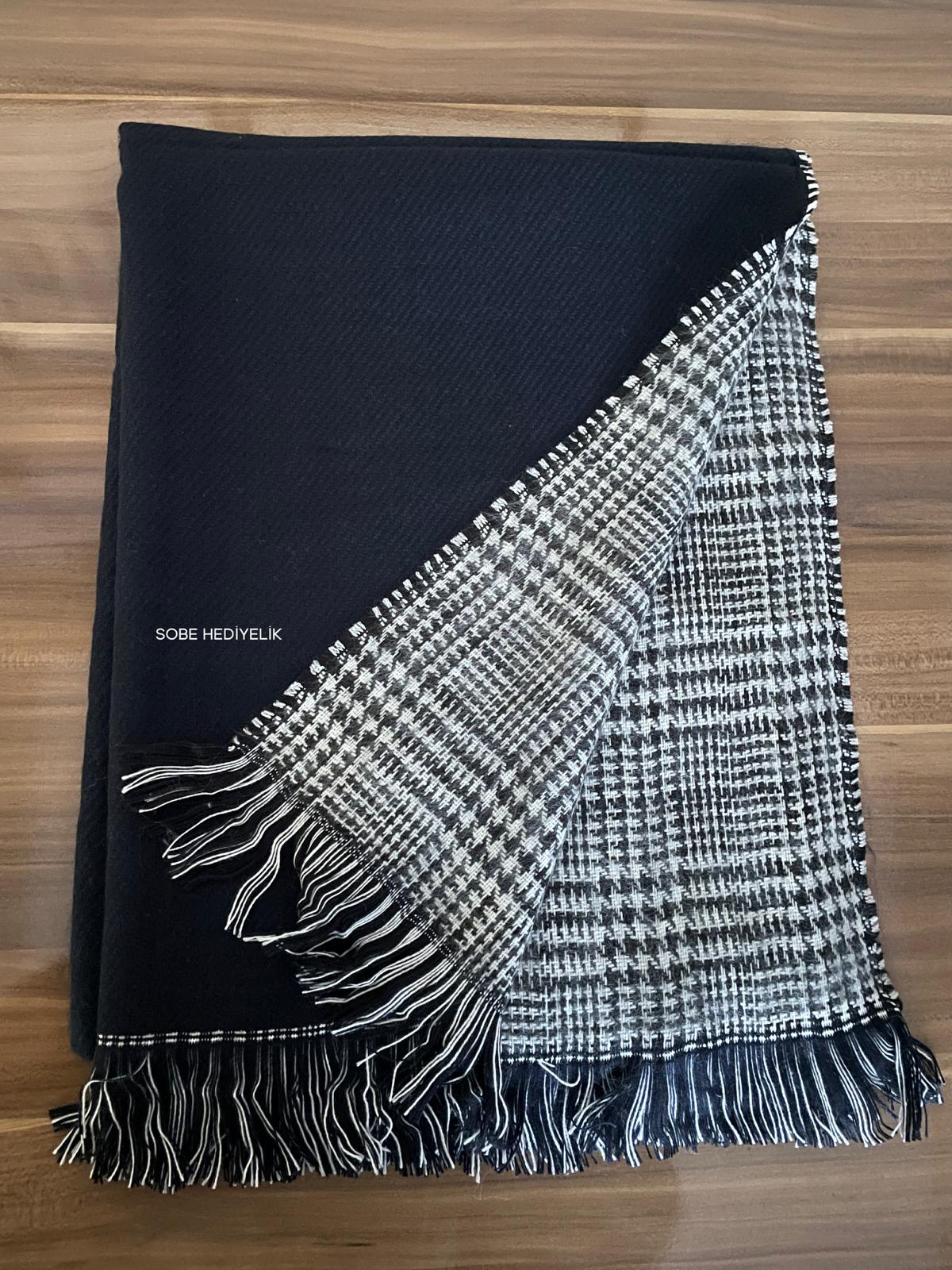 Kışlık Yünlü Çift Taraflı Ekose Şal - Lacivert