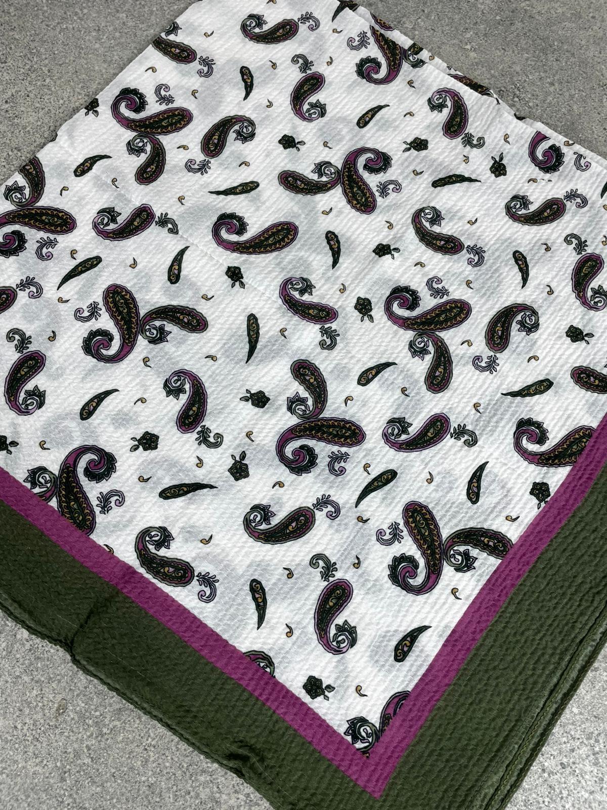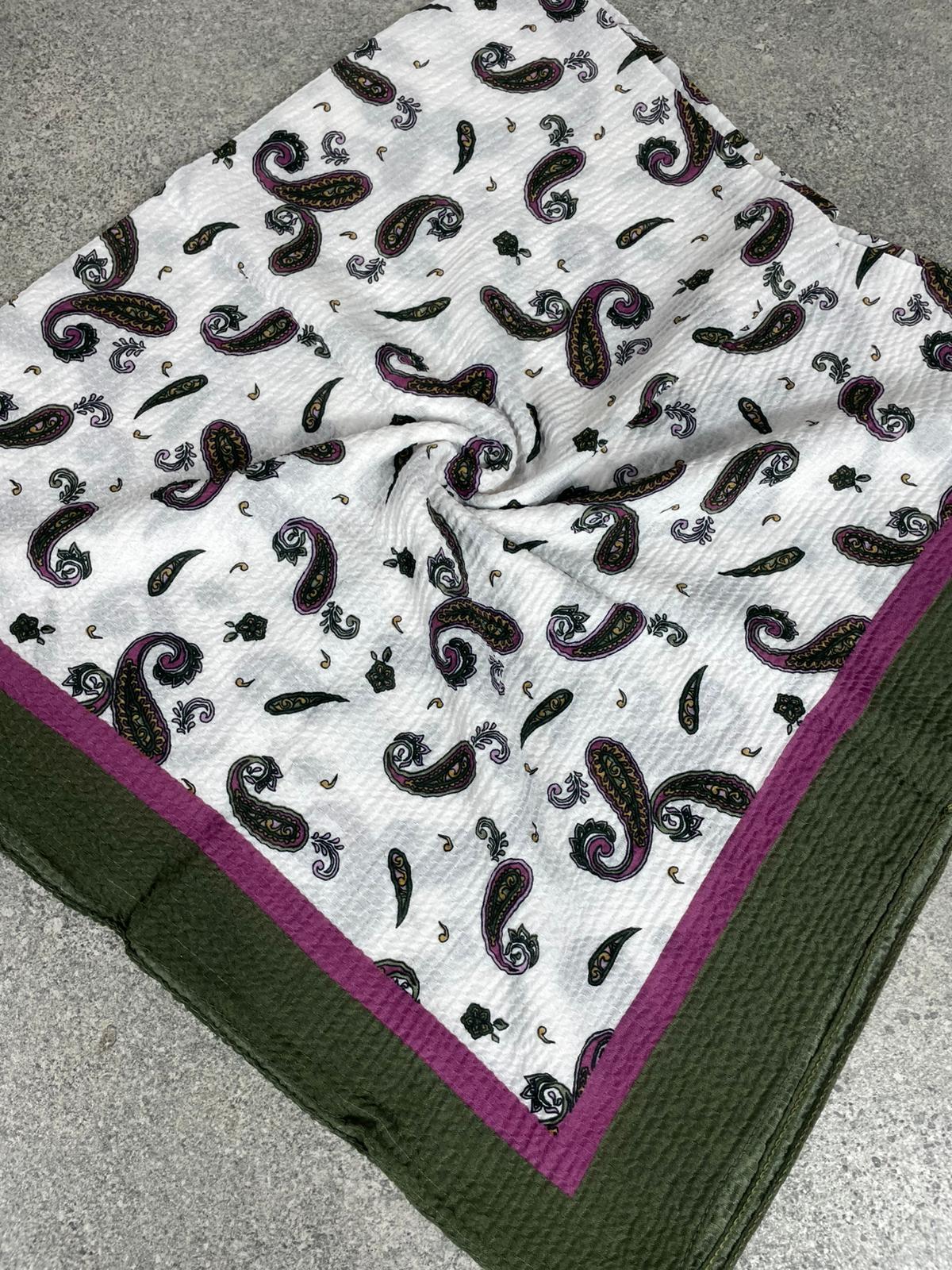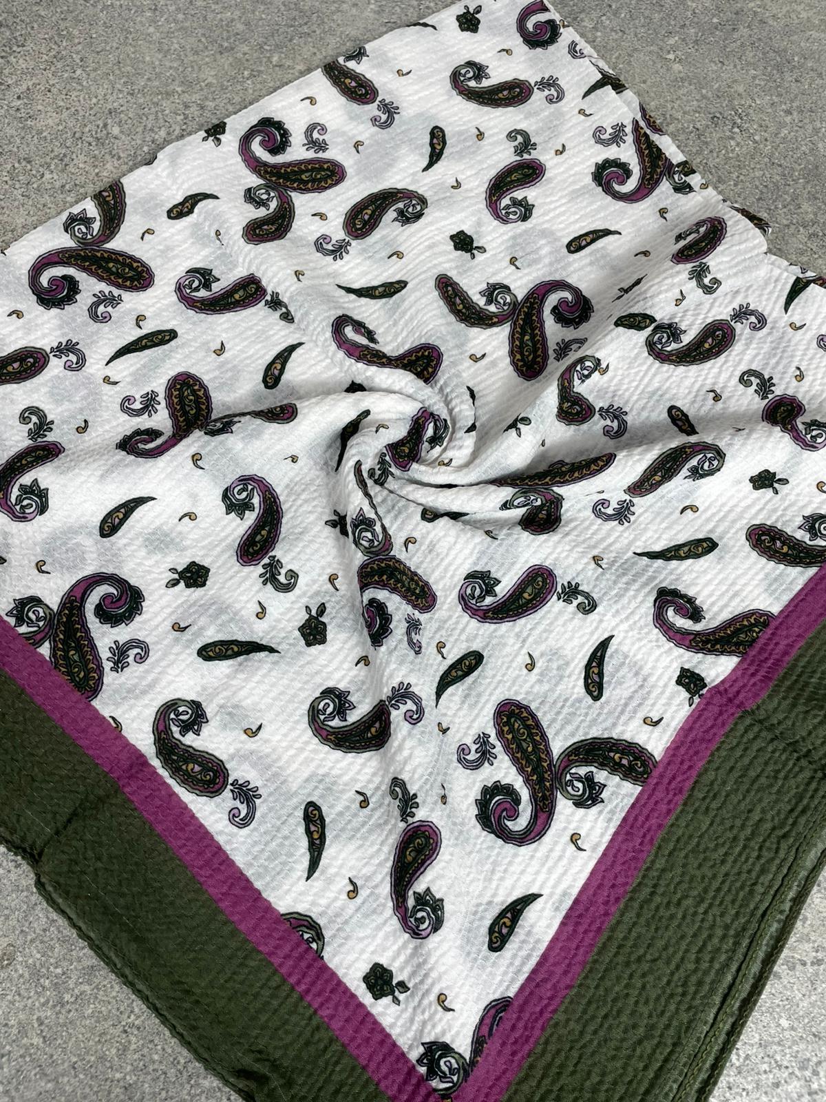 Kraş Dokulu Beyaz Zemin Paisley Desenli Yazma