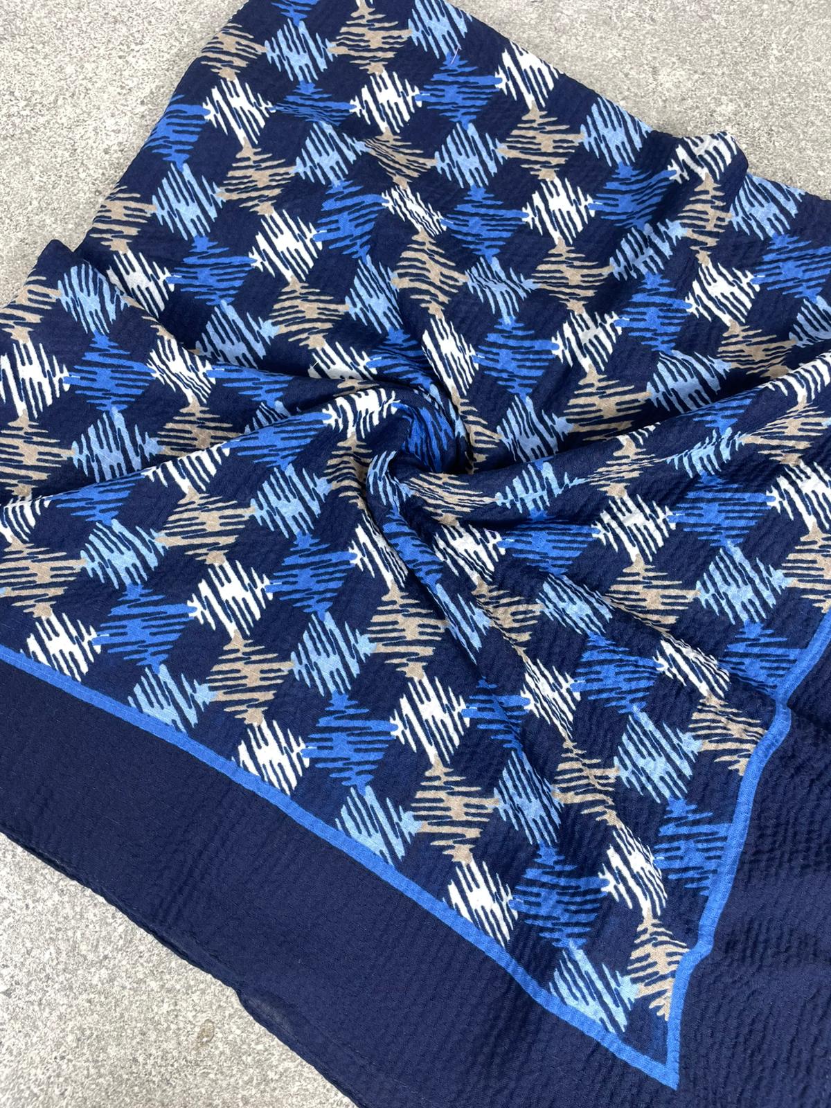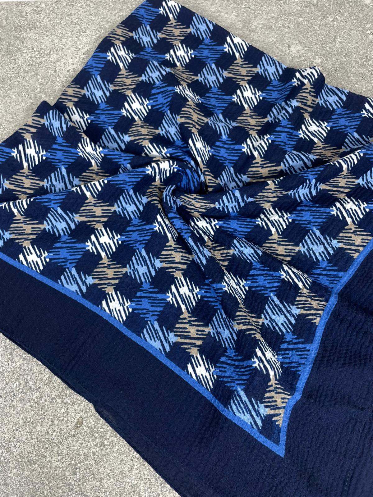 Kraş Dokulu Lacivert Mavi Geometrik Desenli Yazma