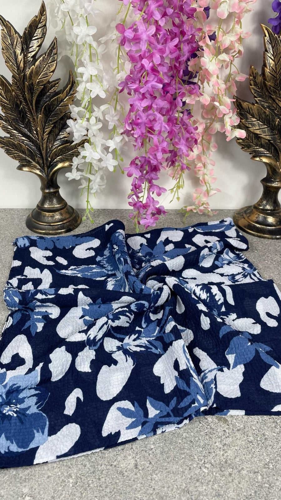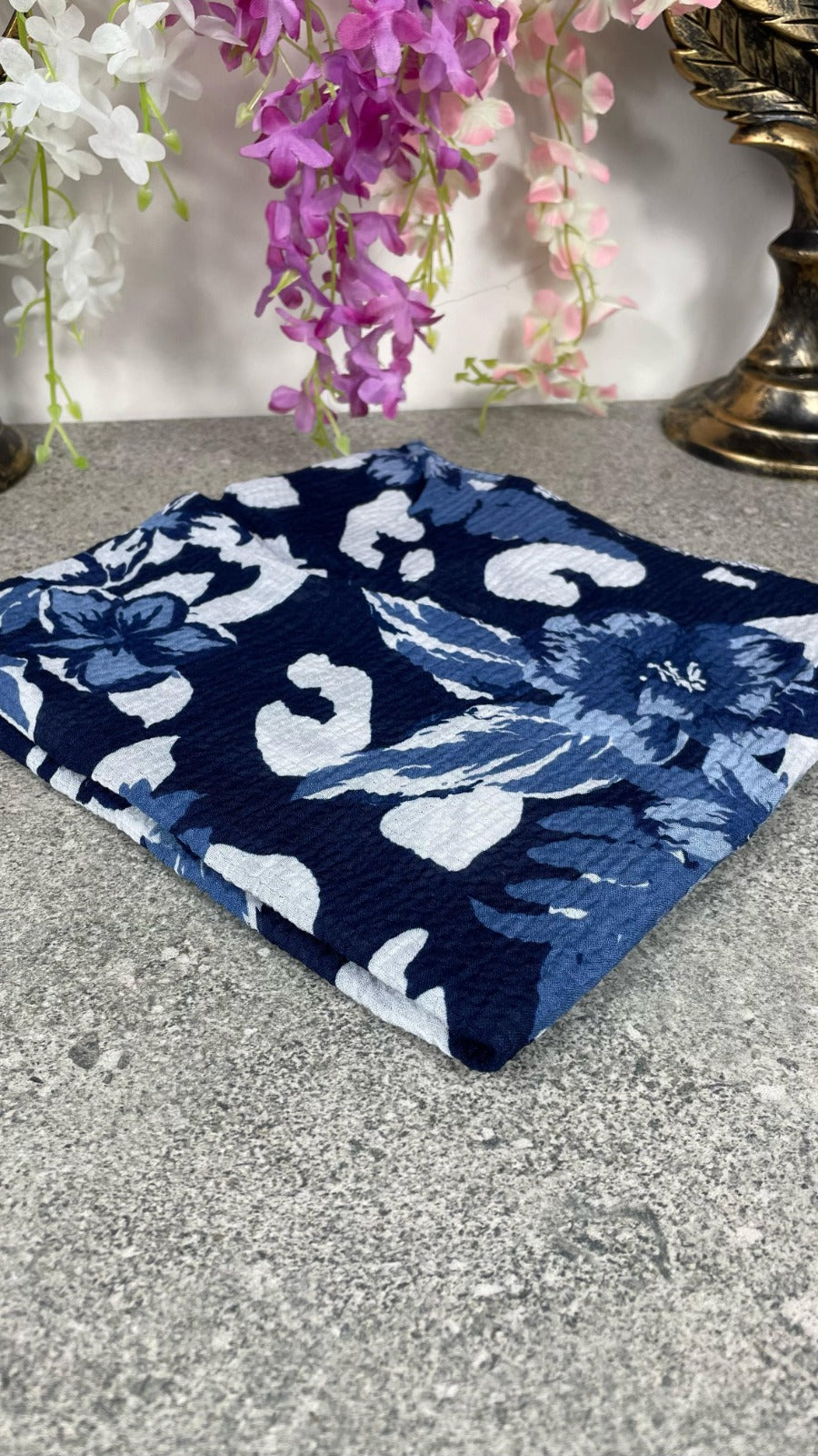 Lacivert Çiçek Desenli Pamuklu Yazma – 100x100 cm Eşarp | Nefes Alan Yumuşak Kumaş