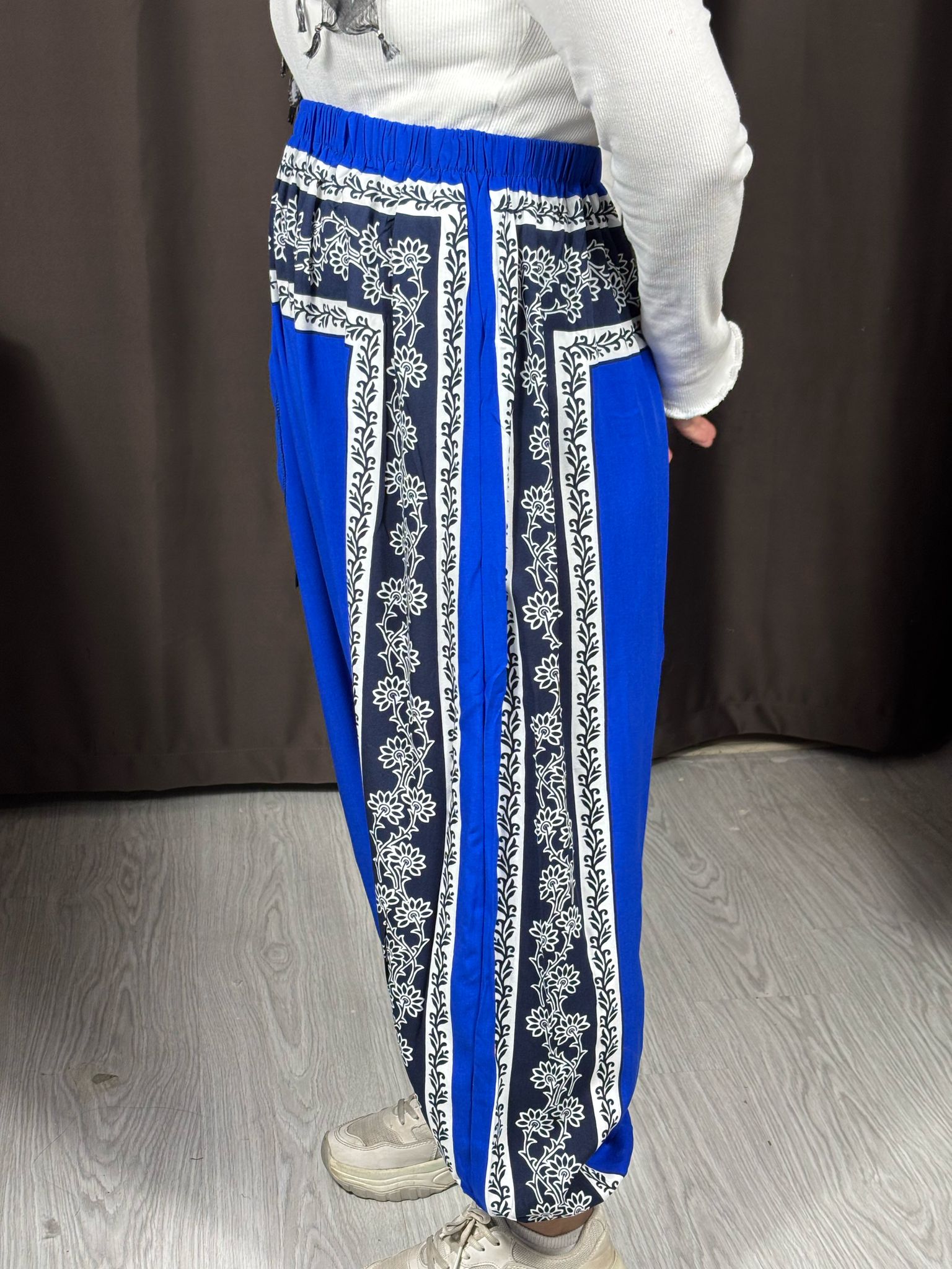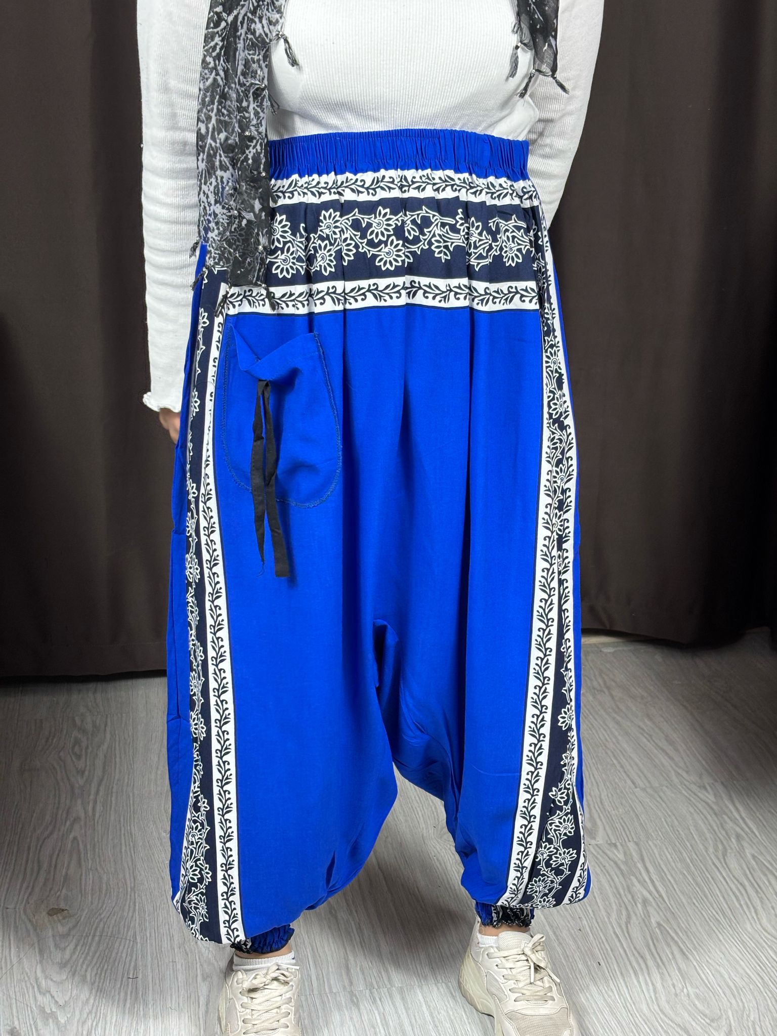 Mavi Etnik Desenli Rahat Kesim Şalvar