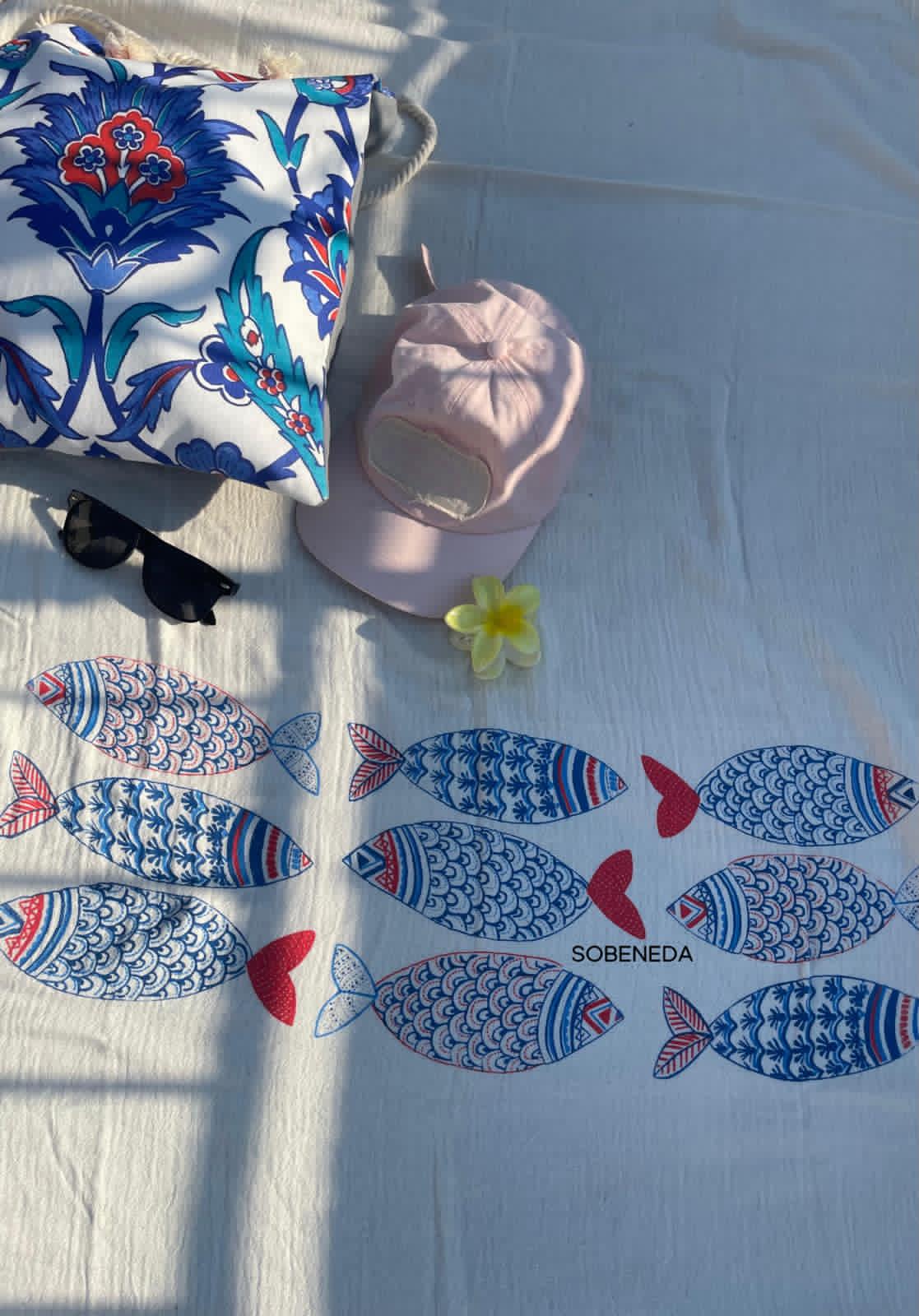 Müslin Kumaş Balık Desenli Peştemal 100x180 cm