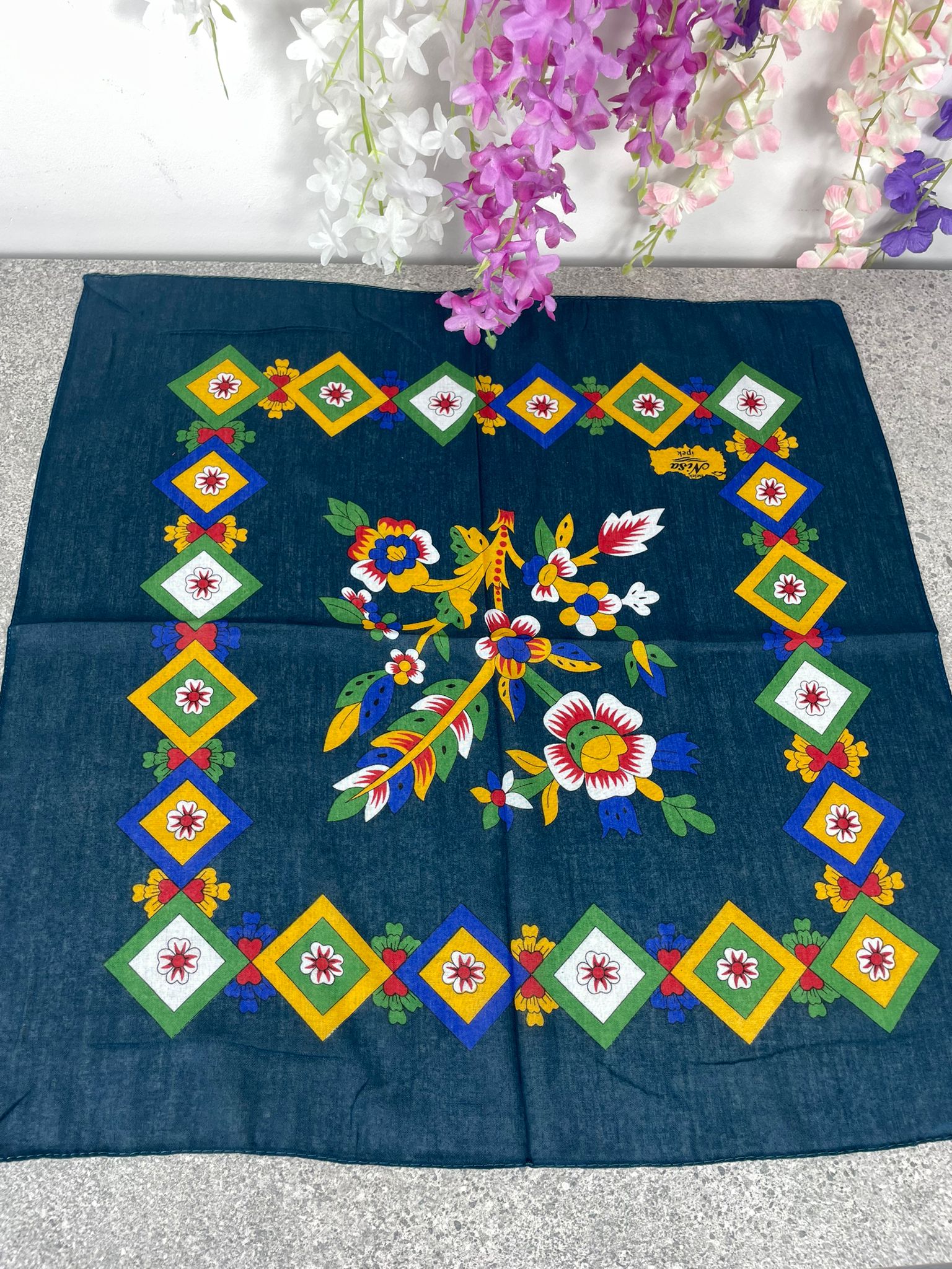 Petrol Mavisi Çengelköy Desen Bandana – 55×55 cm