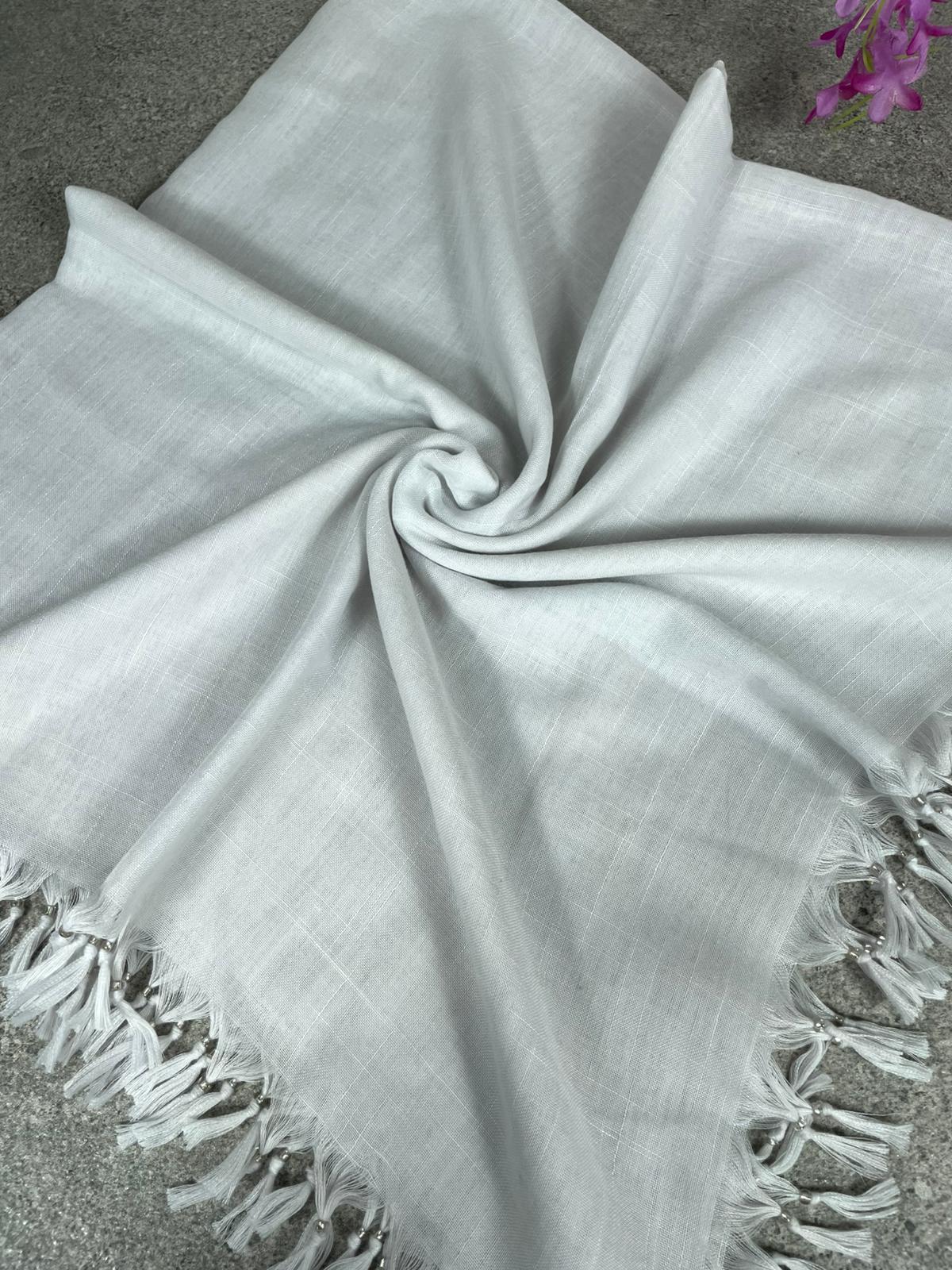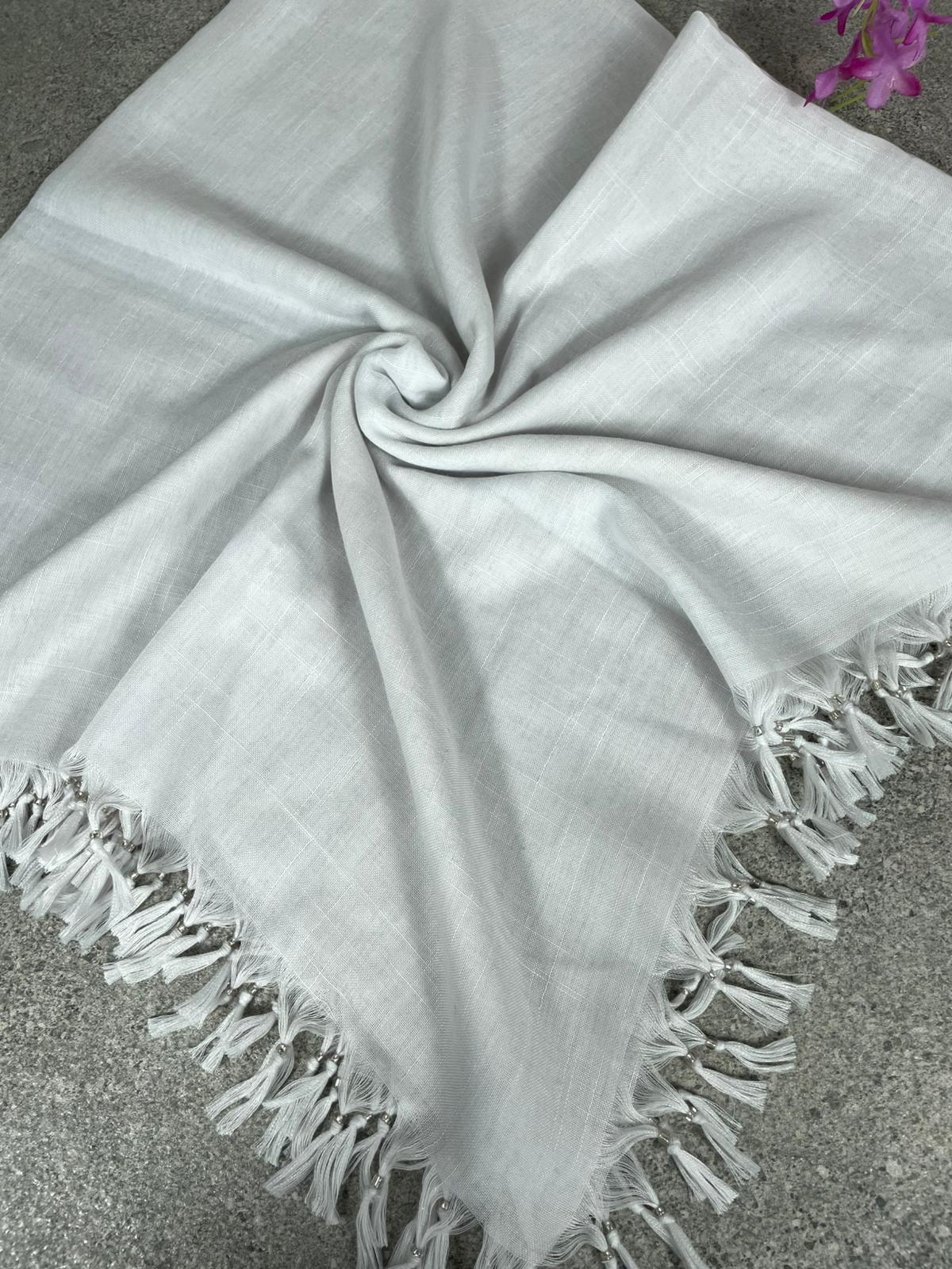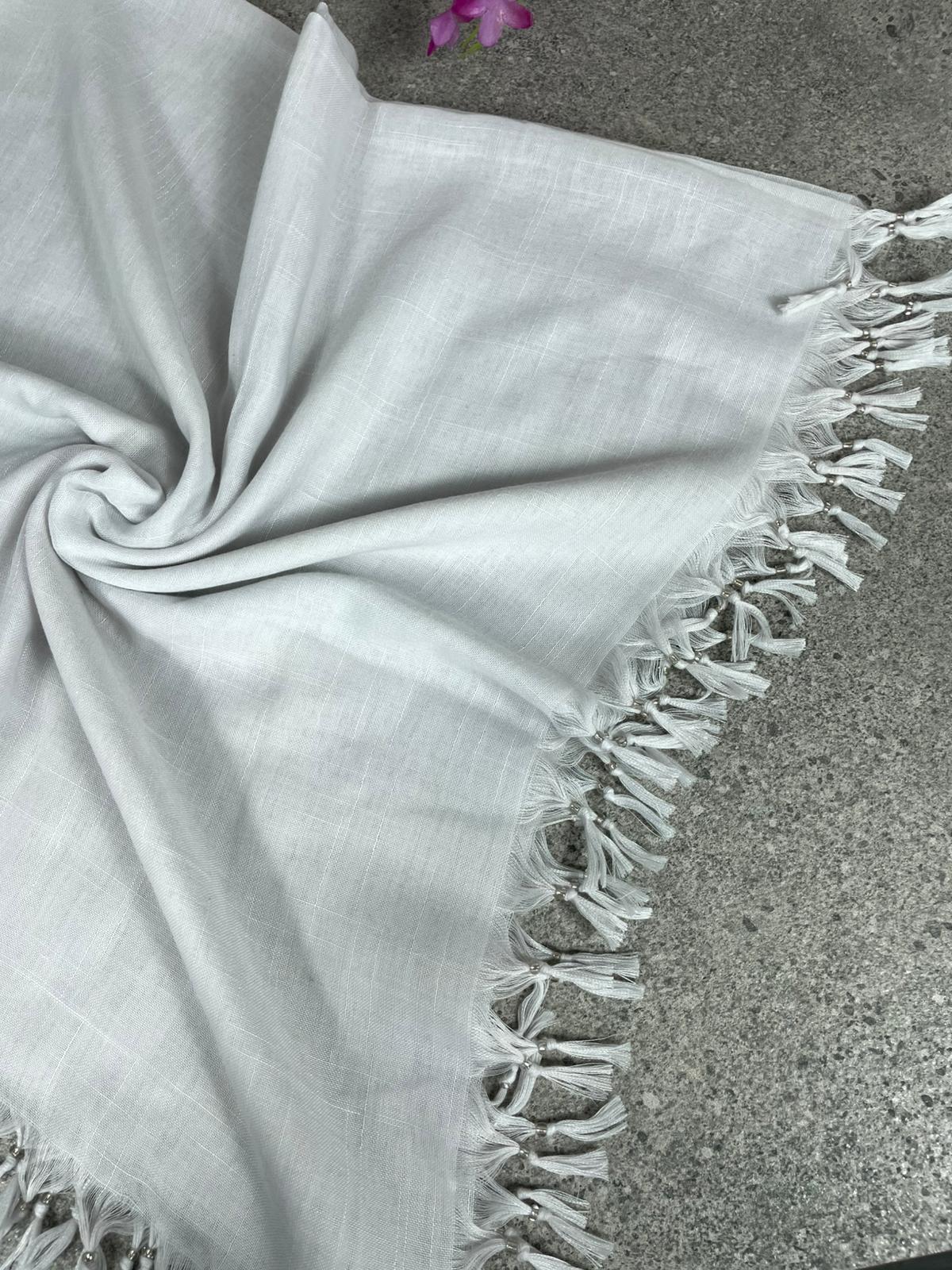 Püsküllü Pamuklu Yazma - Beyaz