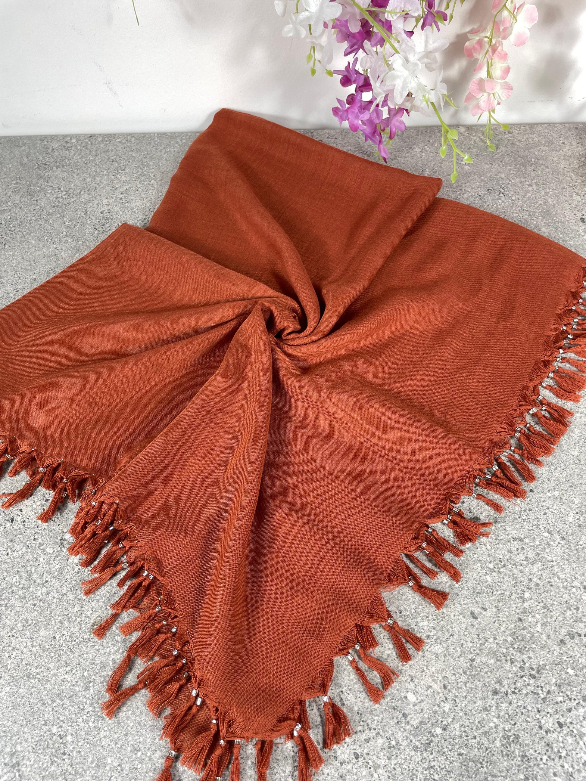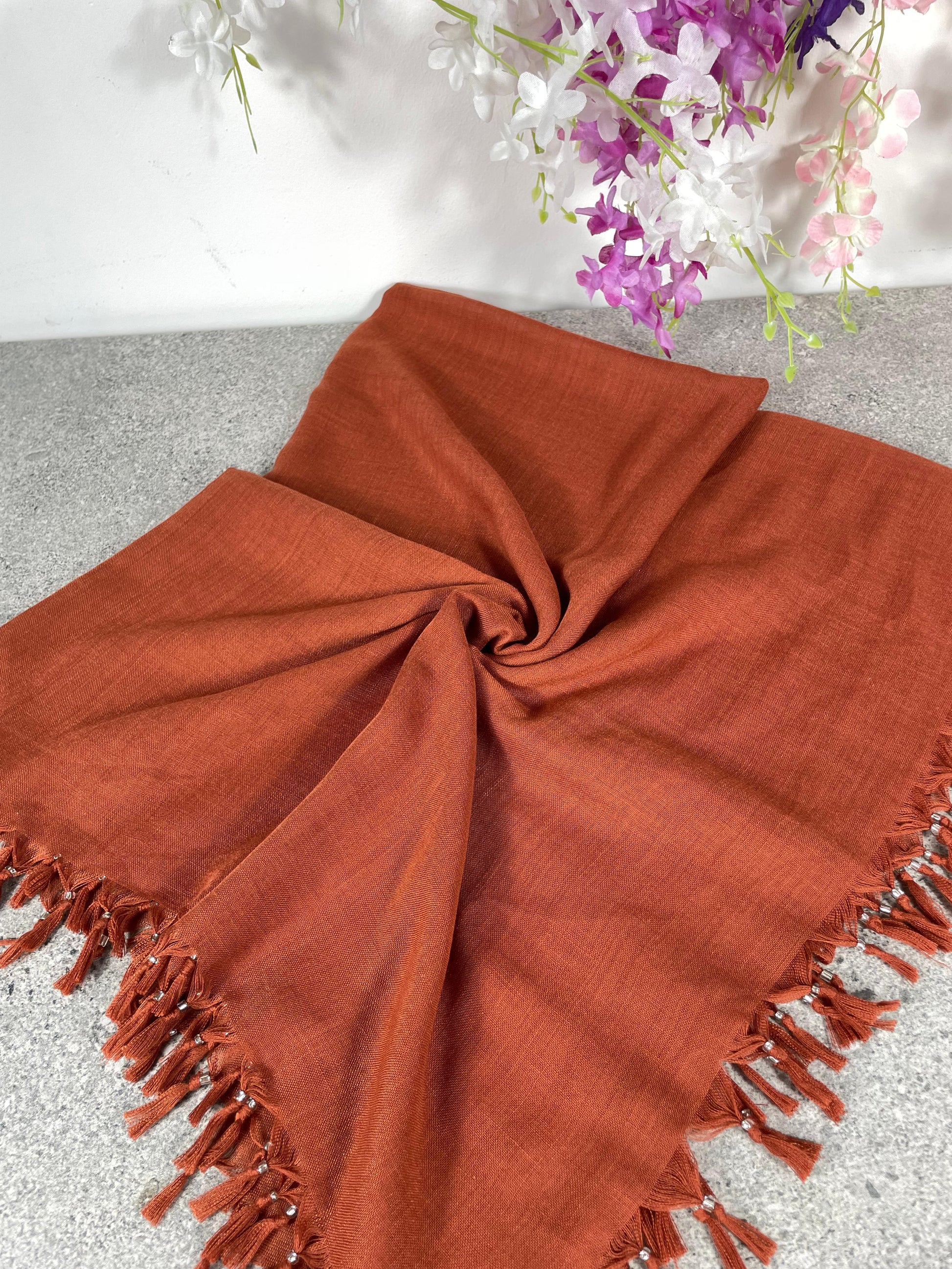Kenarlardaki püskül ve inci detayları, ürüne özenli, el işçiliği hissi veren özel bir görünüm katar.