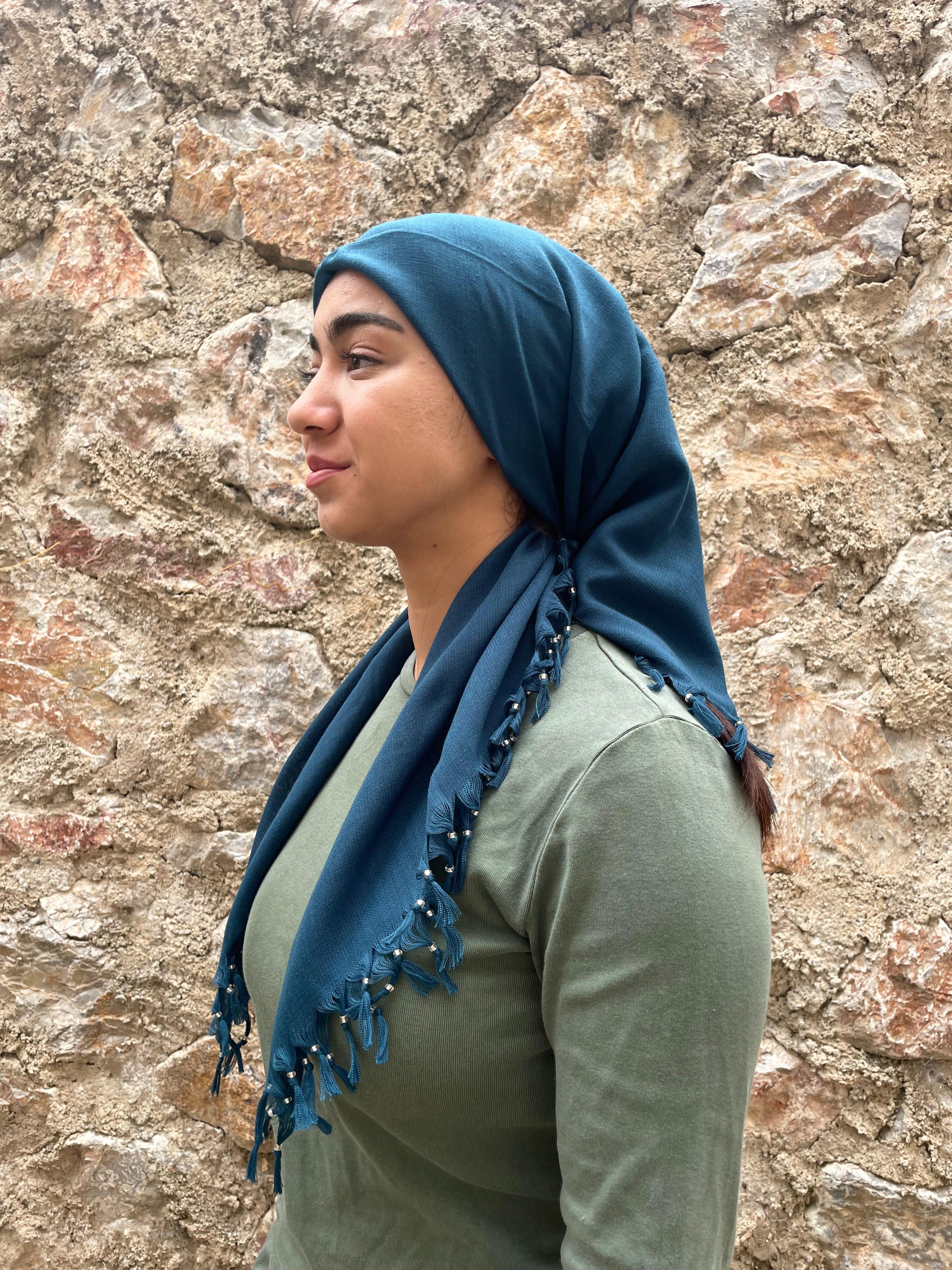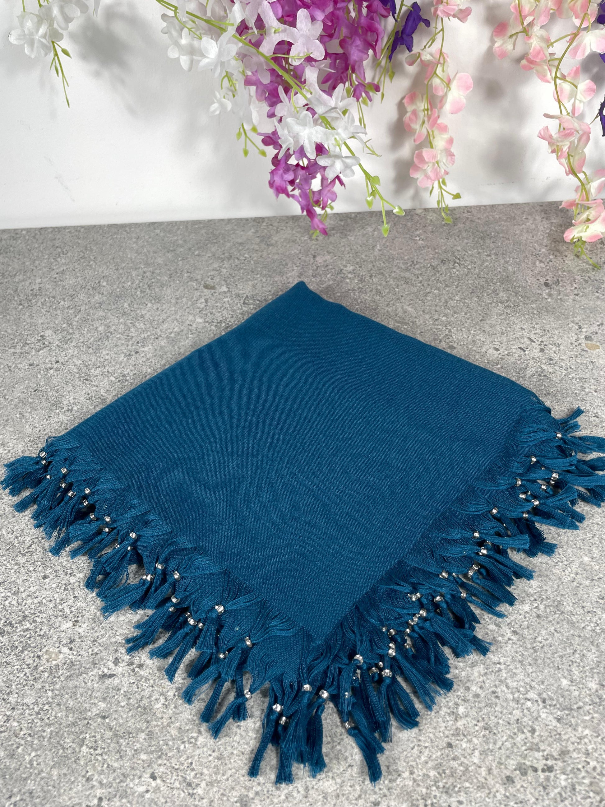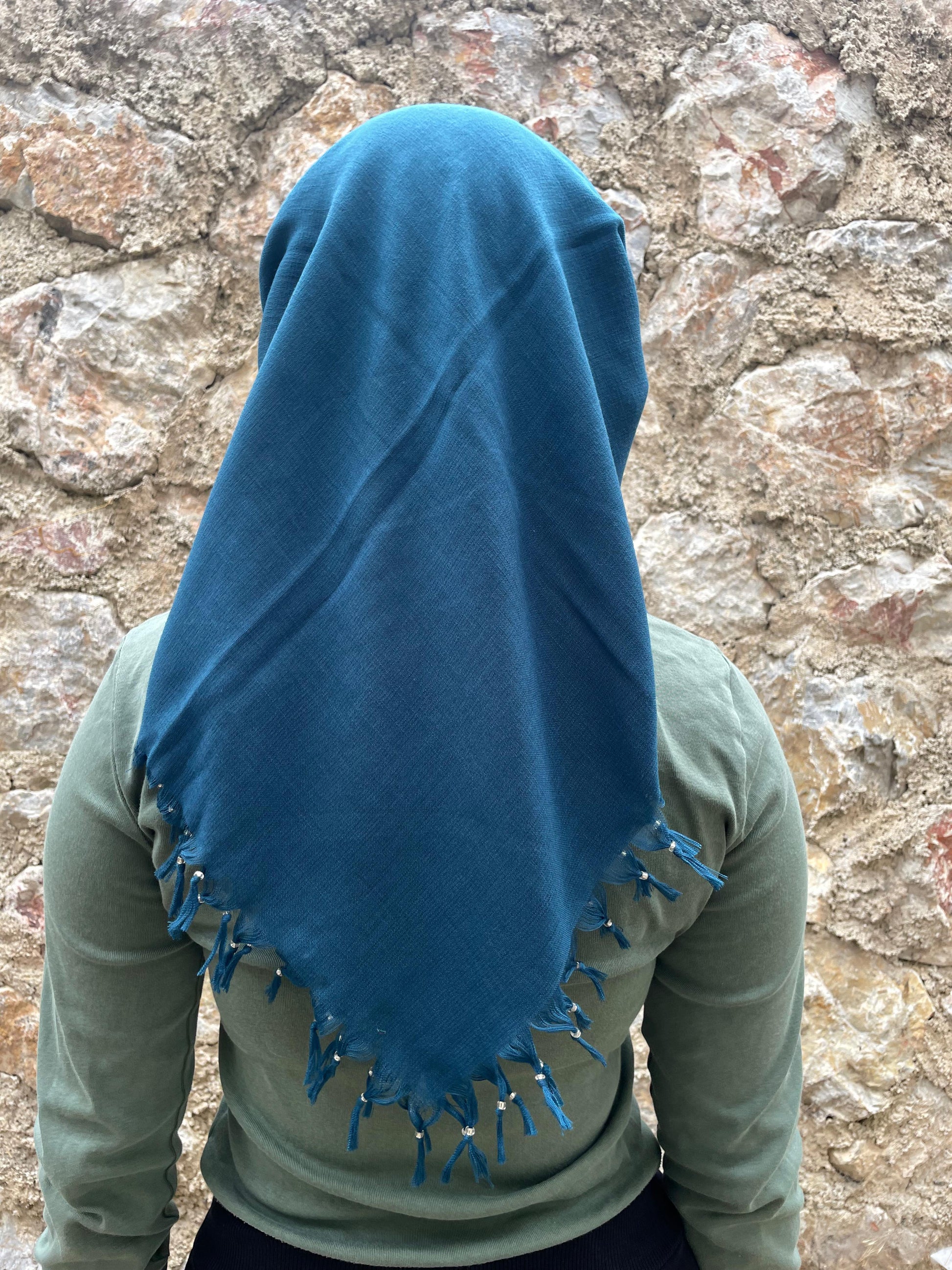 Püsküllü Pamuklu Yazma - Petrol Mavisi