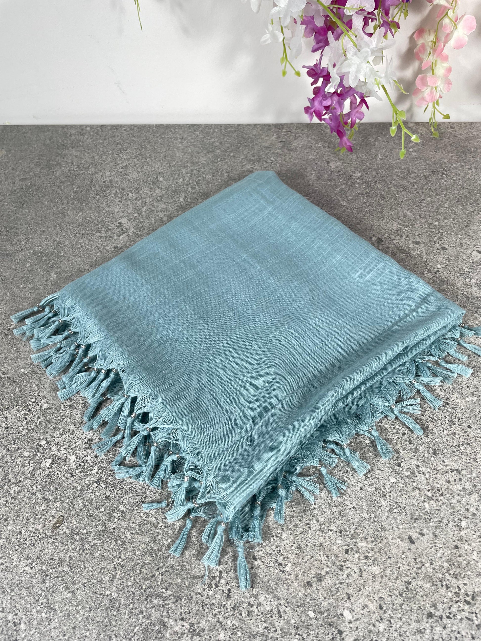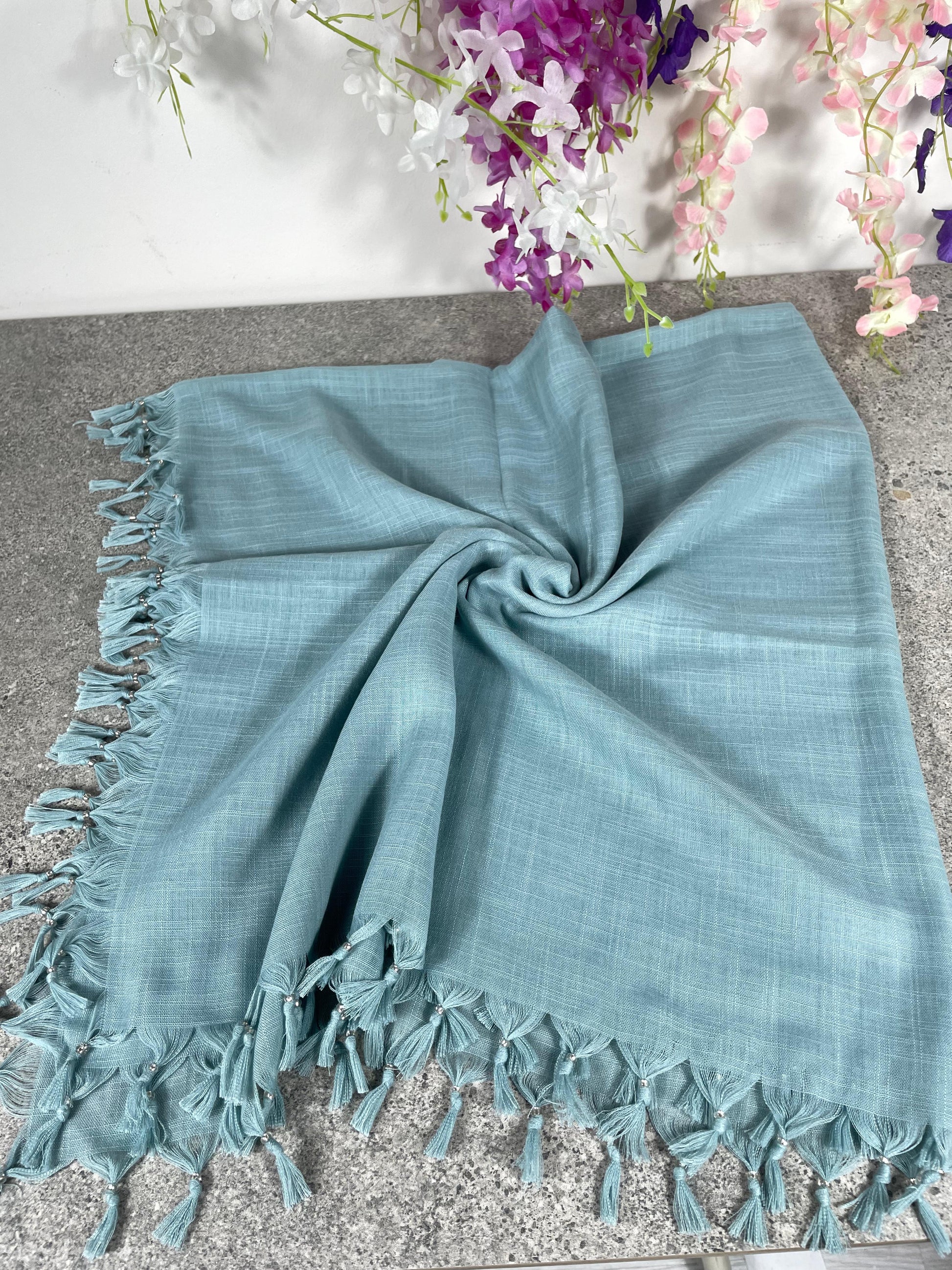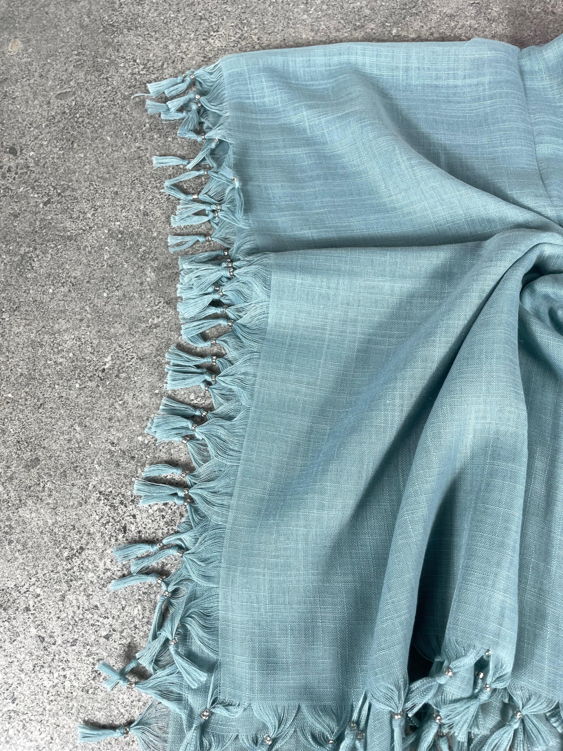 Püsküllü Pamuklu Yazma - Su Yeşili