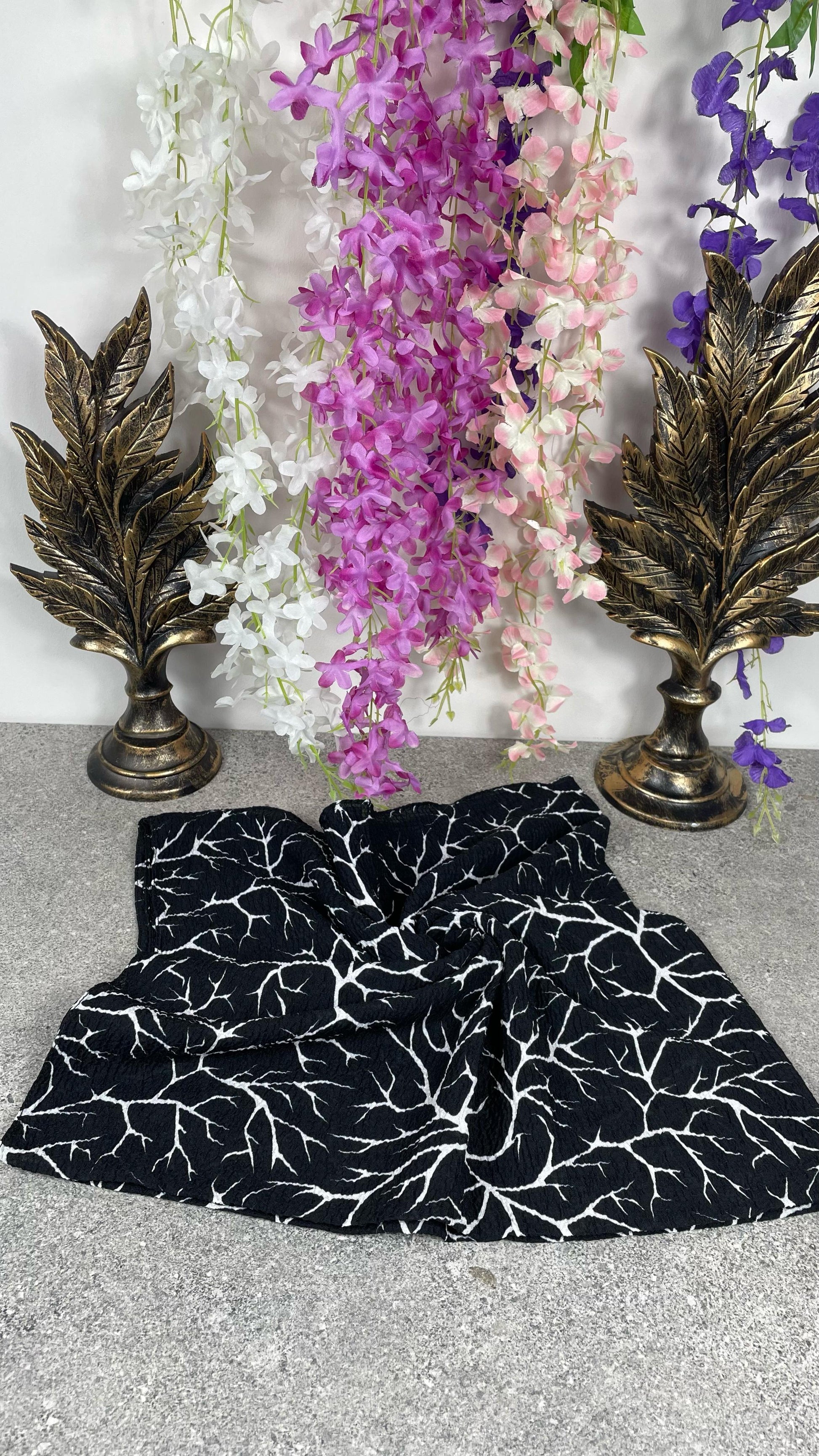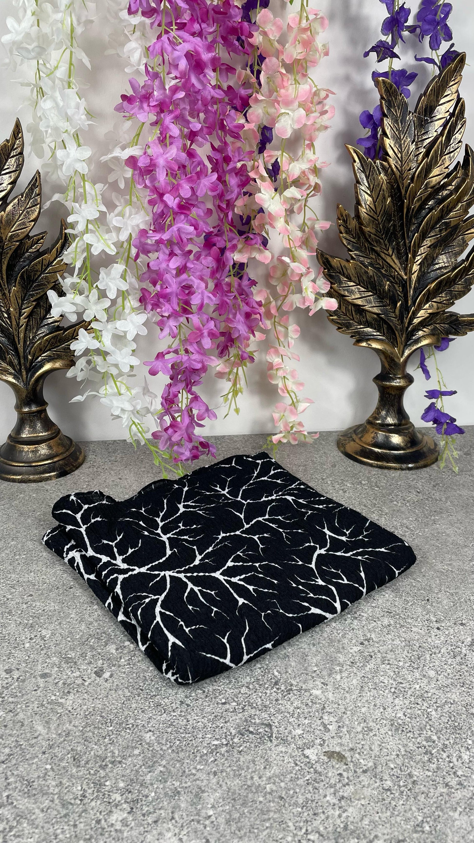 Siyah Beyaz Desenli Pamuklu Yazma Eşarp