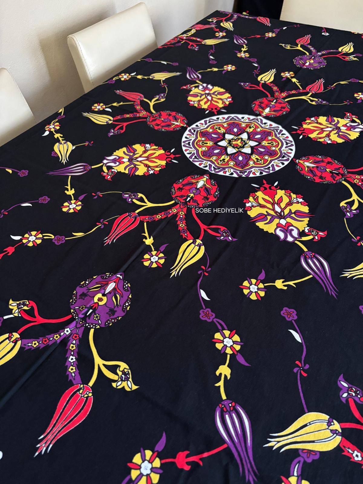 - Siyah zemin üzerindeki canlı geleneksel motifleriyle masaya şık, ferah ve dikkat çekici bir görünüm kazandırır.