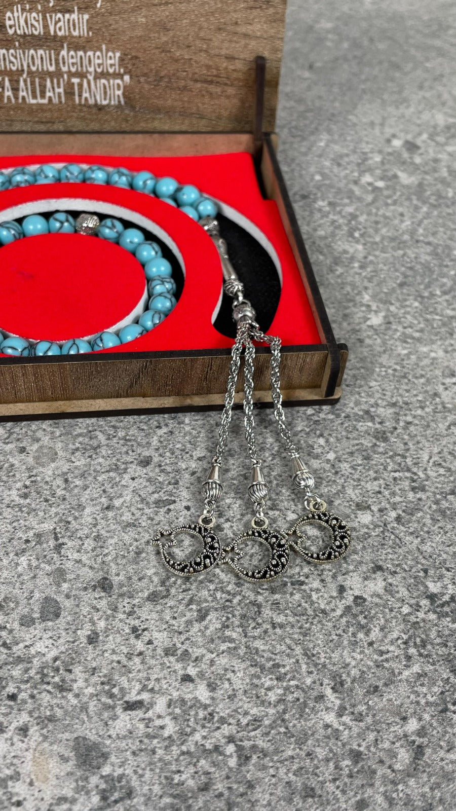 Turkuaz Taşı Tesbih & Bileklik Seti - Şık Ahşap Kutulu