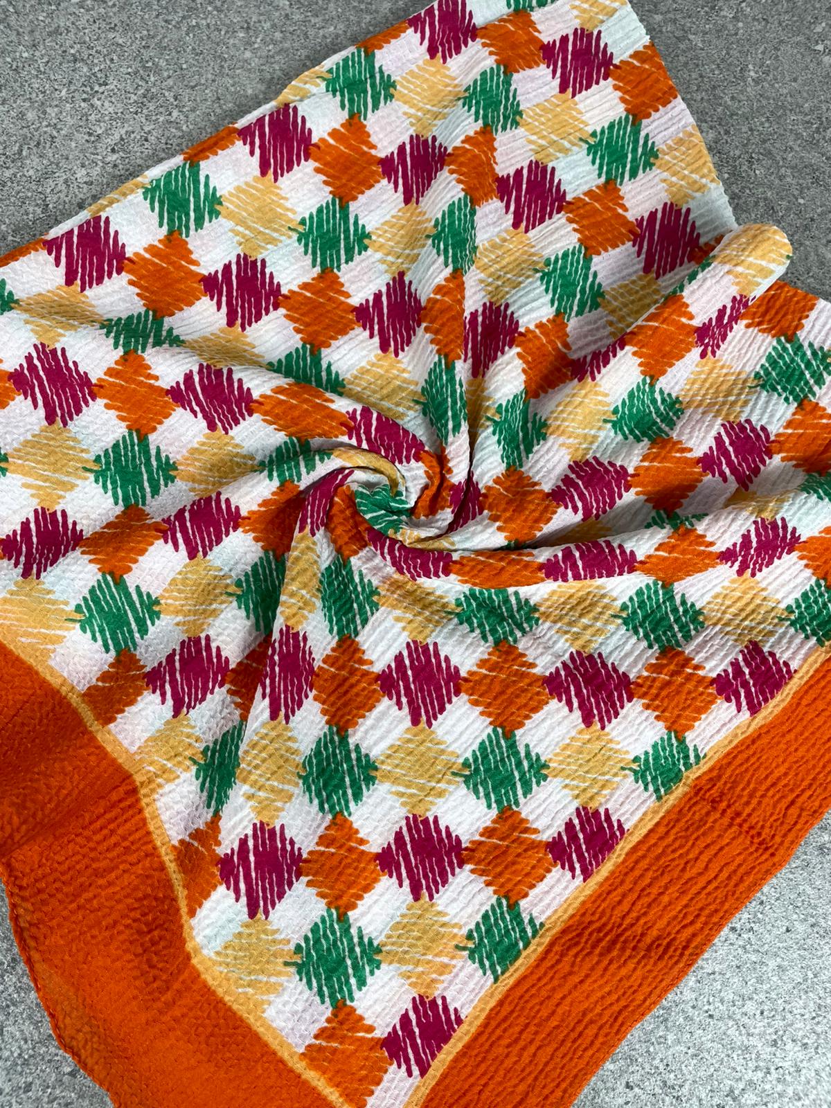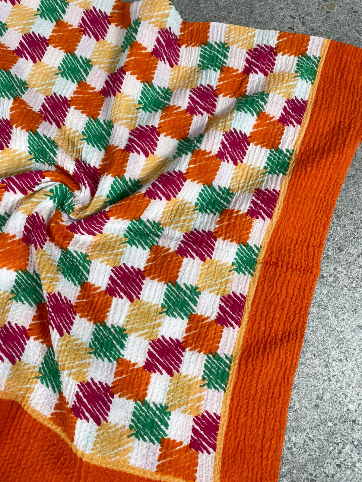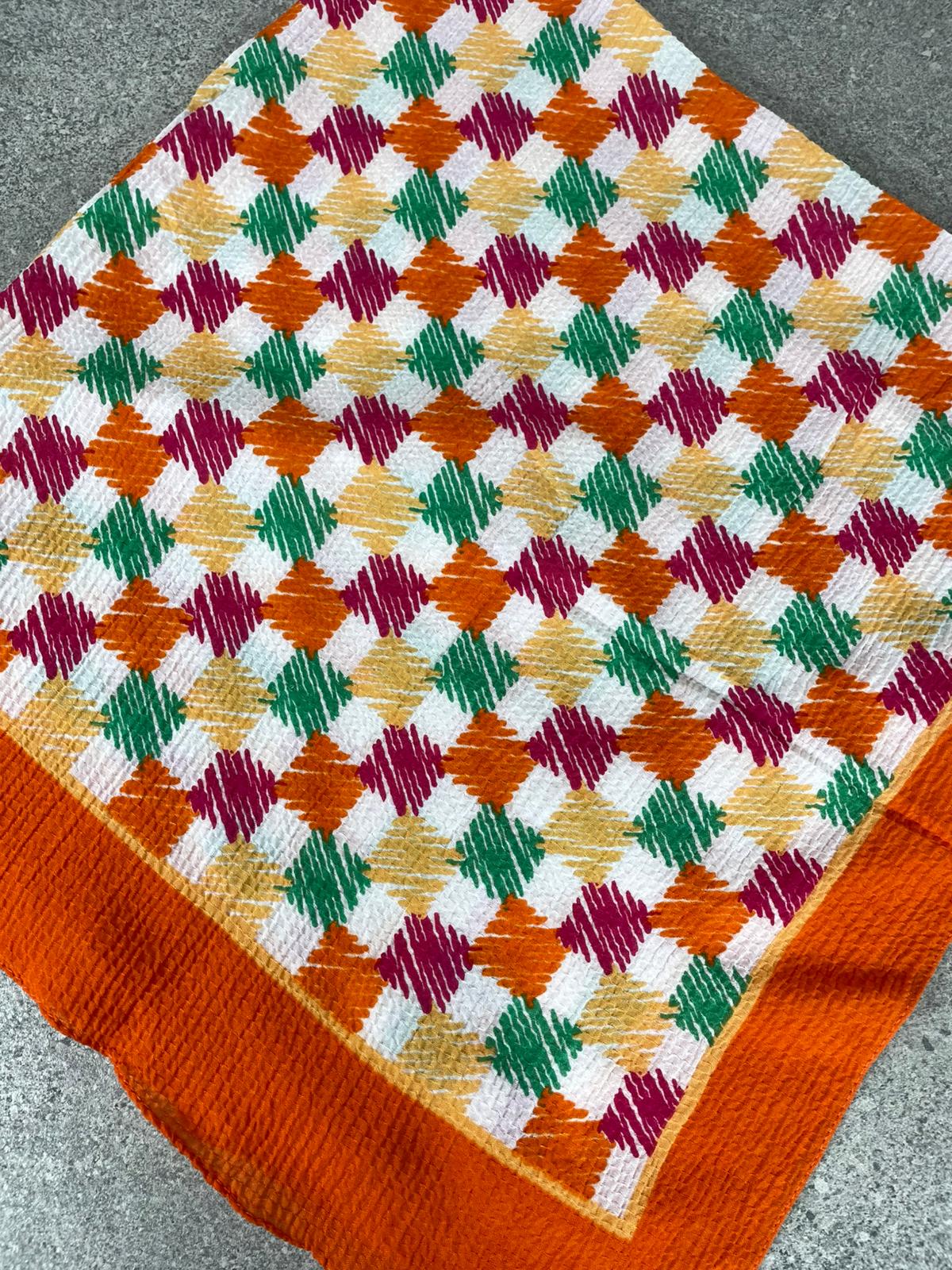 Turuncu Kraş Dokulu Renkli Geometrik Desenli Yazma