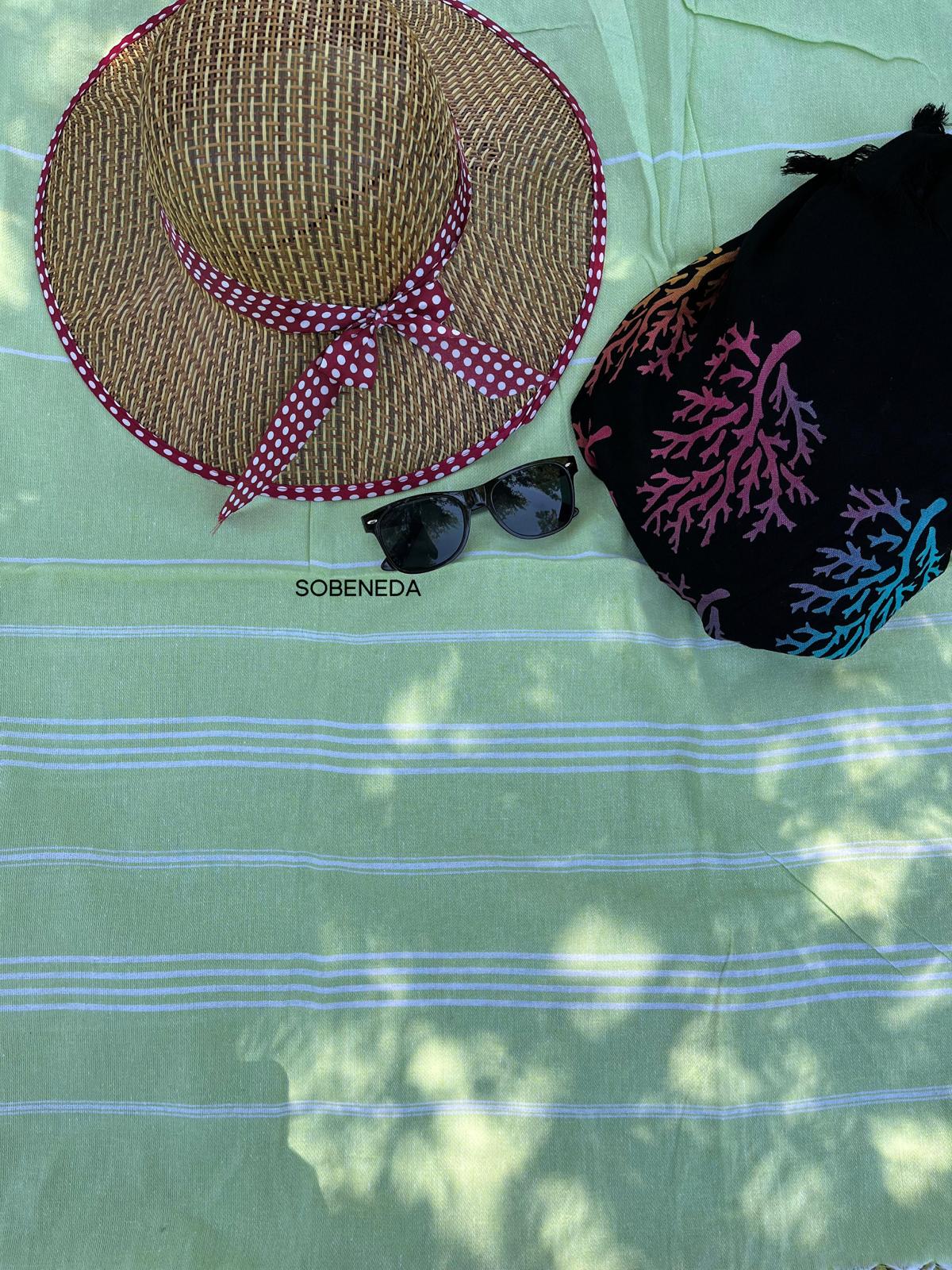Yeşil Çizgili Pamuk Peştemal 100x180 cm