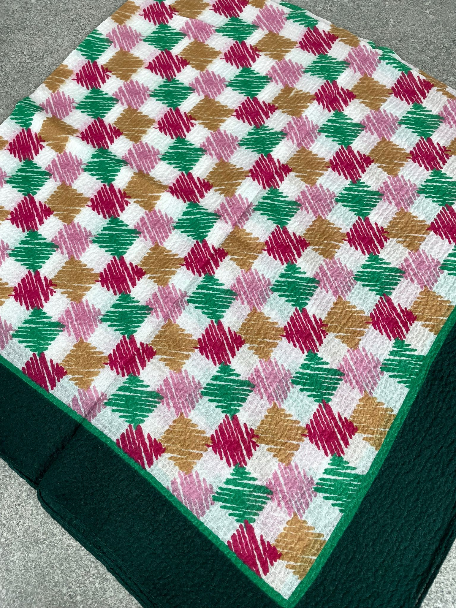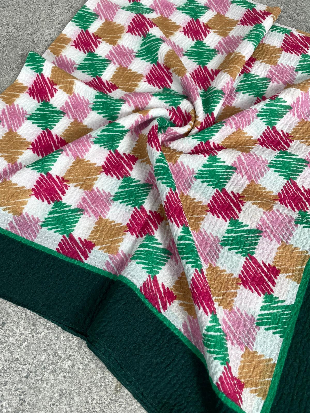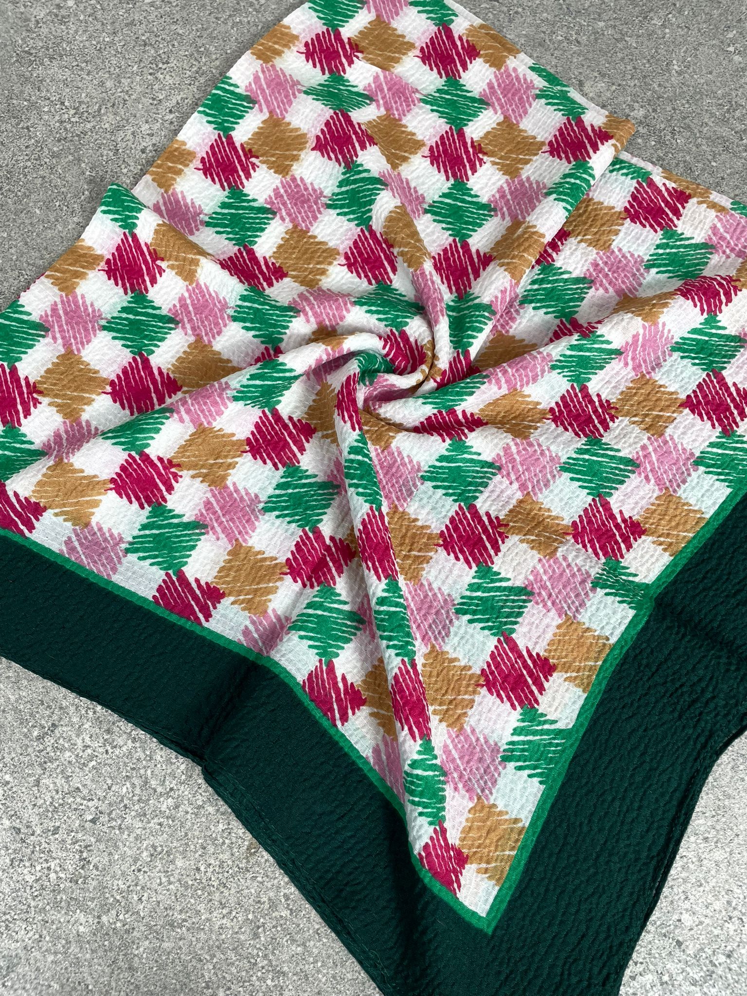 Yeşil Kraş Dokulu Renkli Geometrik Desenli Yazma