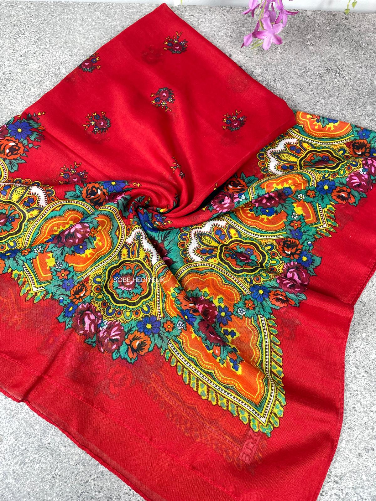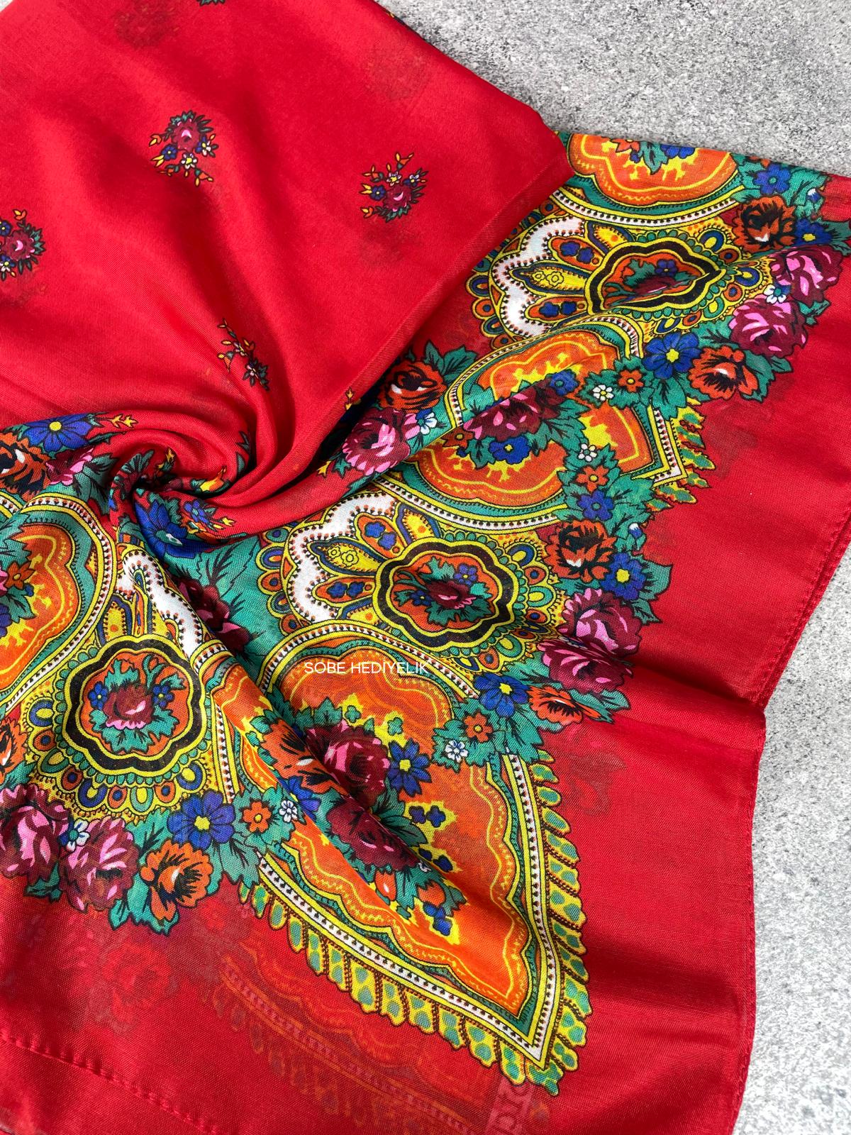 100x100 cm ölçüsüyle başörtüsü, fular veya aksesuar olarak kullanıma uygundur.