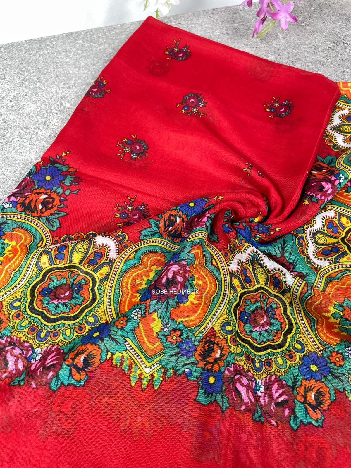 Yöresel Hamavi Desen Mardin Yazması - Kırmızı