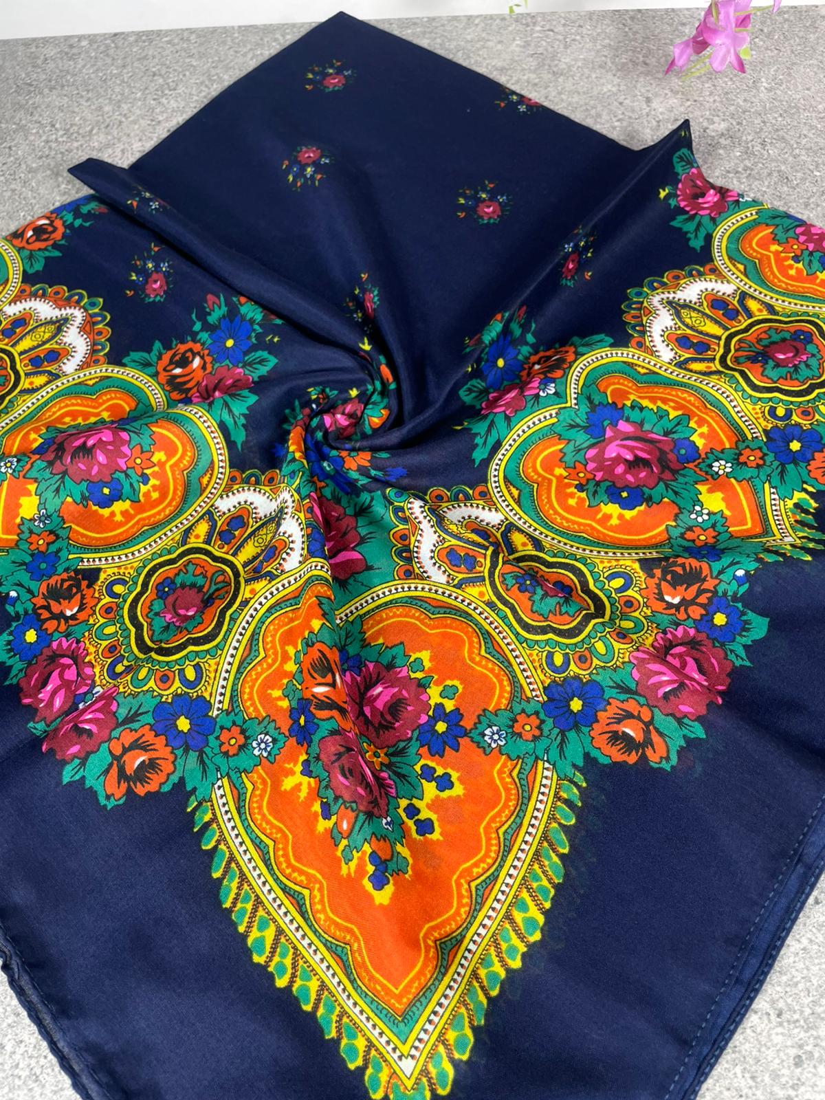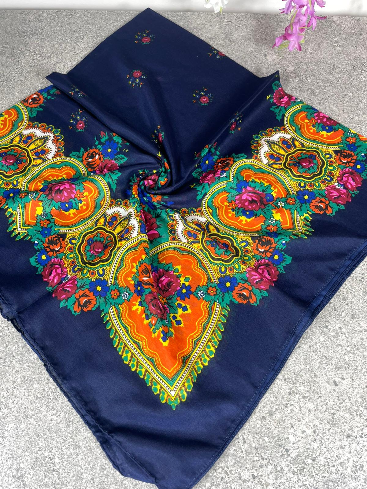 100x100 cm ölçüsüyle başörtüsü, fular veya aksesuar olarak kullanıma uygundur.