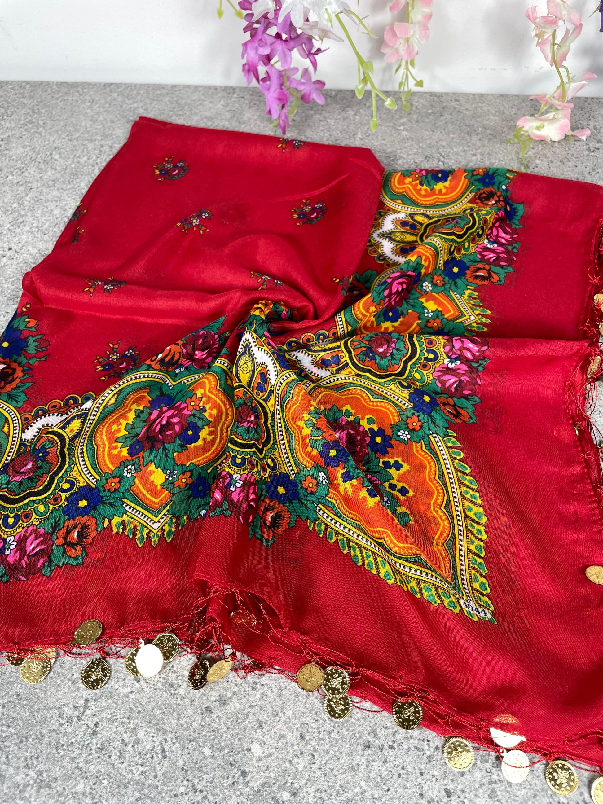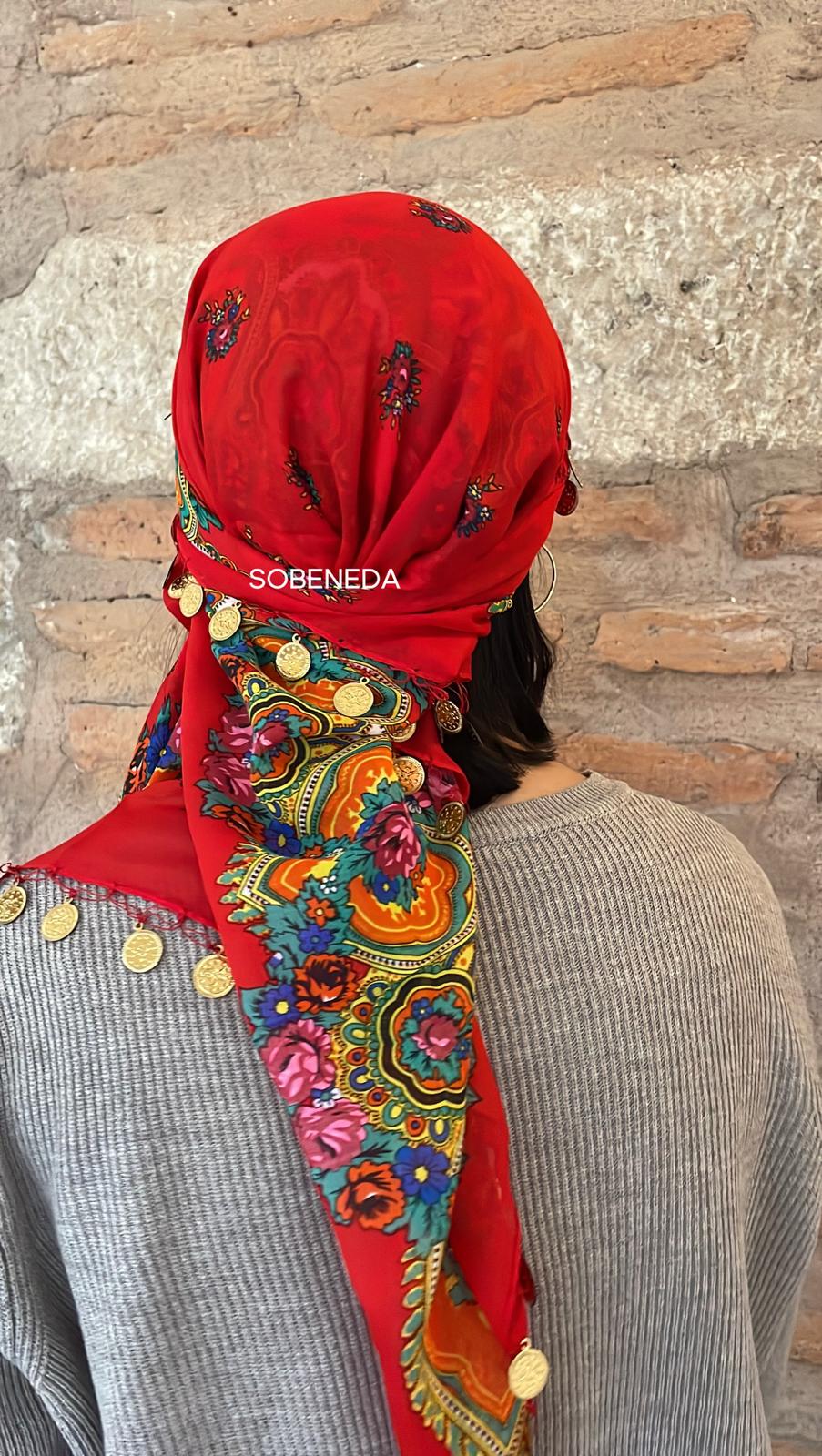 Yöresel Hamavi Desen Pullu Mardin Yazması - Kırmızı