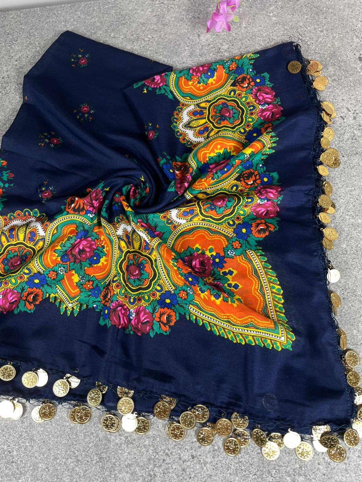 Yöresel Hamavi Desen Pullu Mardin Yazması - Lacivert