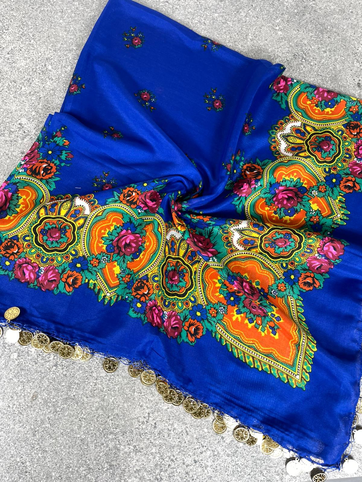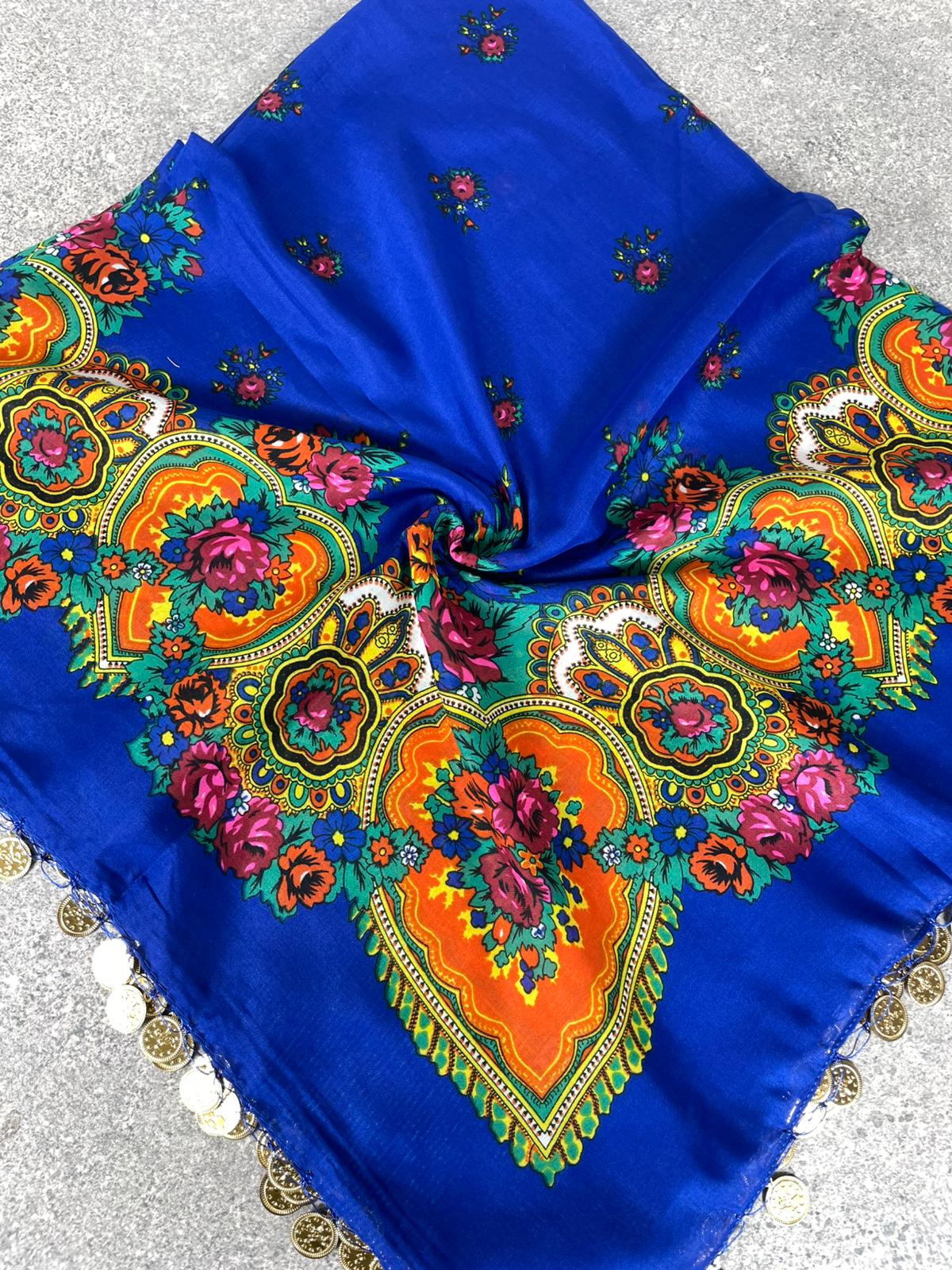 Yöresel Hamavi Desen Pullu Mardin Yazması - Saks Mavisi