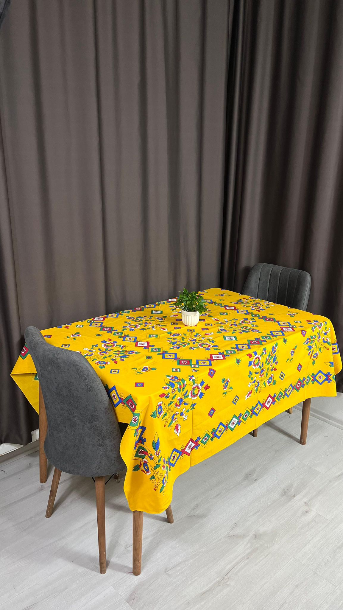 170x170 cm kare ölçüsüyle 6–8 kişilik masalar için uygundur.
