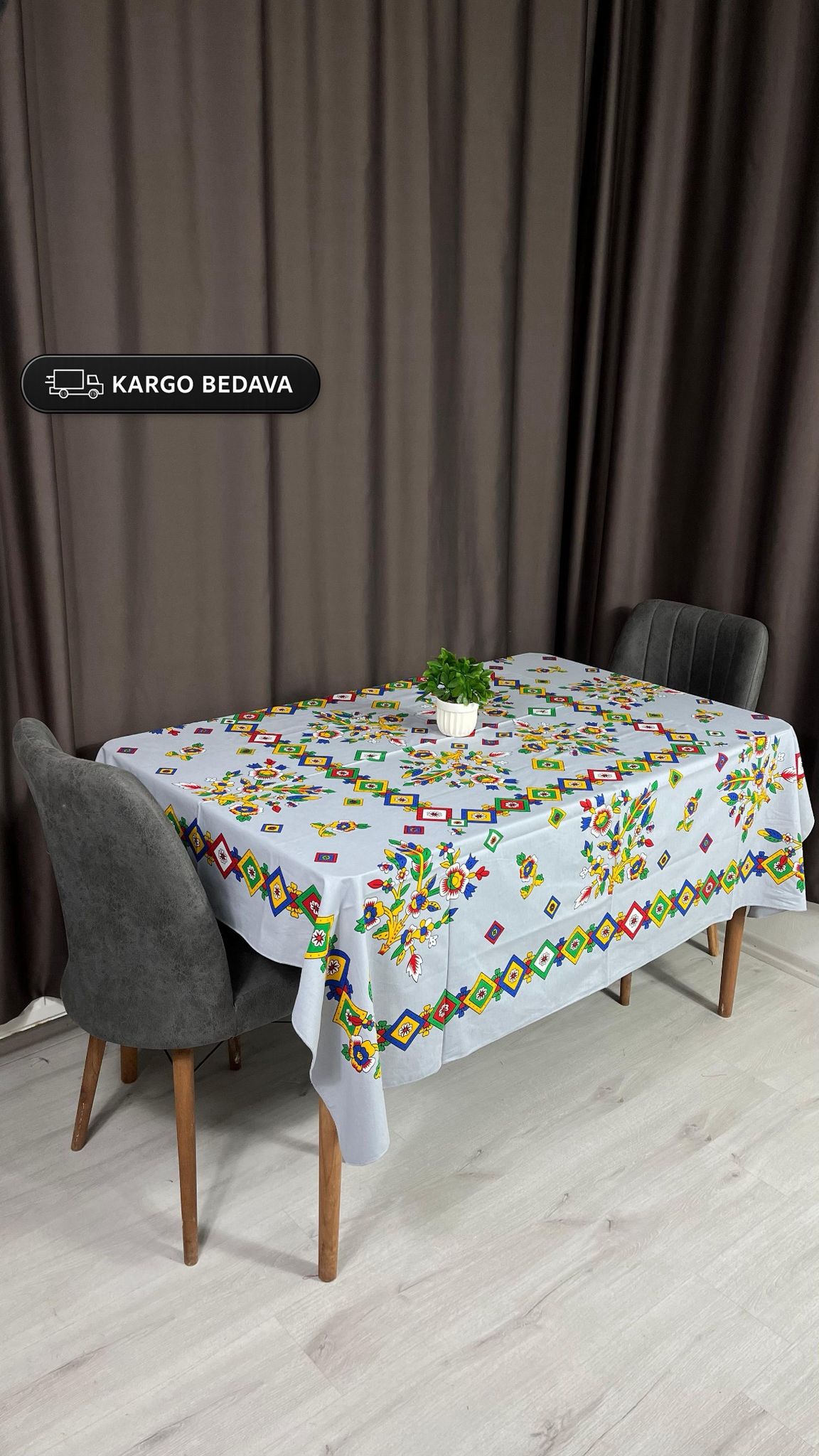 Yöresel Çiçek Desenli 170x170 Kare Masa Örtüsü - Gri