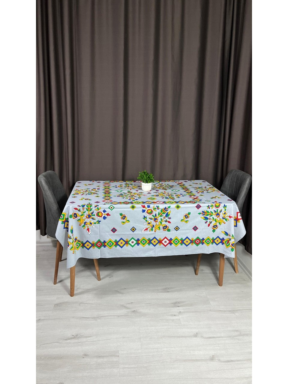 Yöresel Tokat Çiçek Desenli 170x170 Kare Masa Örtüsü - Gri