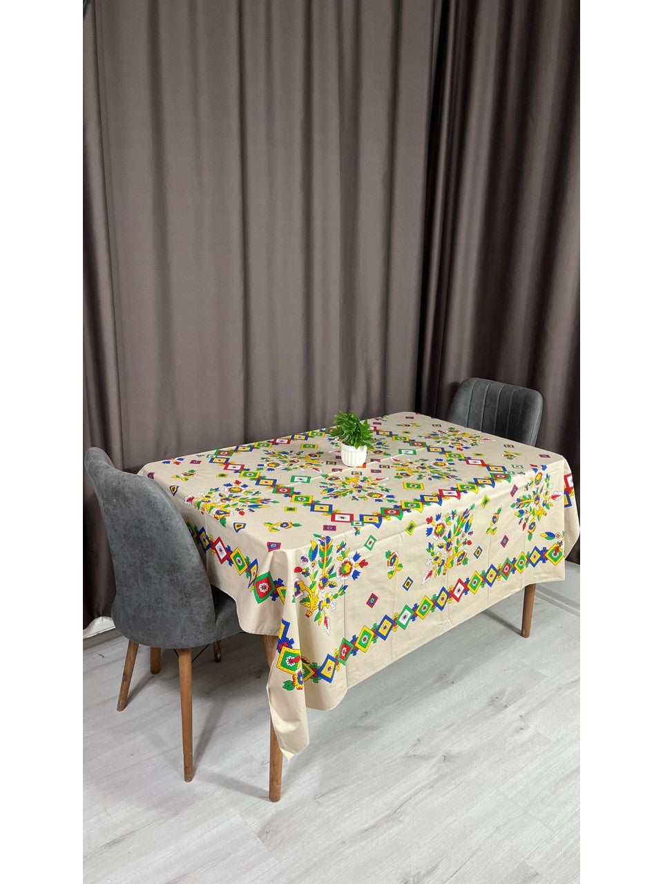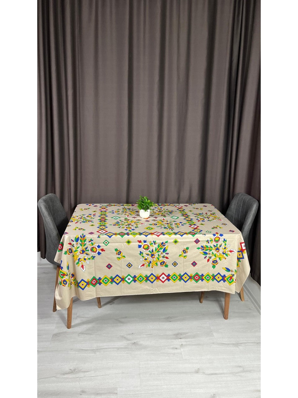 Yöresel Tokat Çiçek Desenli 170x170 Kare Masa Örtüsü - Krem